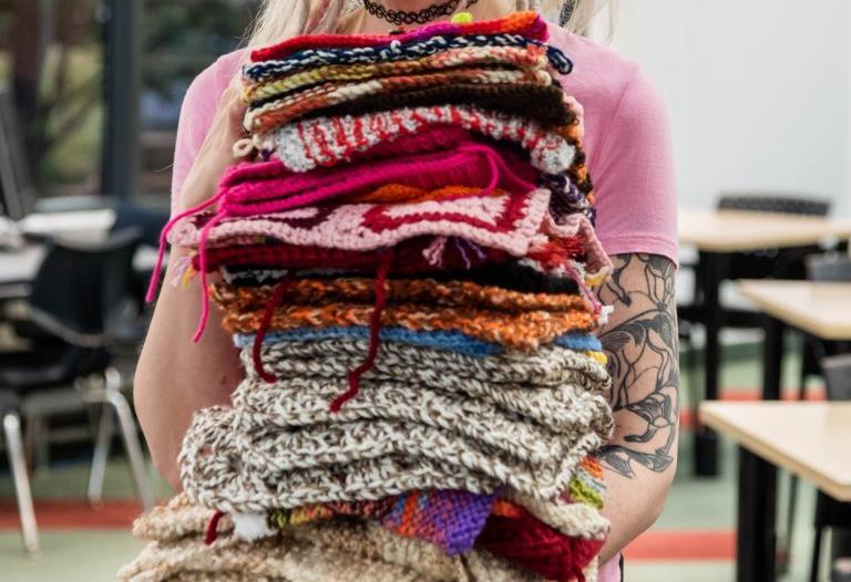 Le projet Tricote ta ville égaiera plusieurs endroits du territoire lavallois. La dernière fin de semaine du mois de septembre, à la stationculturelleMomo, le public pourra admirer quatre œuvres de pompons et trois mosaïques de photos des participants des projets de tricot-graffiti tenus dans les quartiers.
