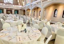 BANQUET HALL: This reasonably-priced yet elegant room provides a large wooden dance floor, built-in stage, audio visual system, overhead screen, outdoor patio with fire pit, and catering kitchen. This space is a must see when searching for your next events location! Seated capacity is 300.