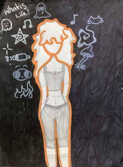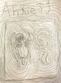 My whole life I’ve always had anxiety. My feelings are as delicate as an angel, so I hate it when I do anything like ordering food or just simply talking to someone, and if I do my anxiety hits me like 1,000 bricks. I get shaky and scared and then I have a panic attack. So what I do to cope with it is draw. My drawing is about how scared I am of doing everything I need to do.