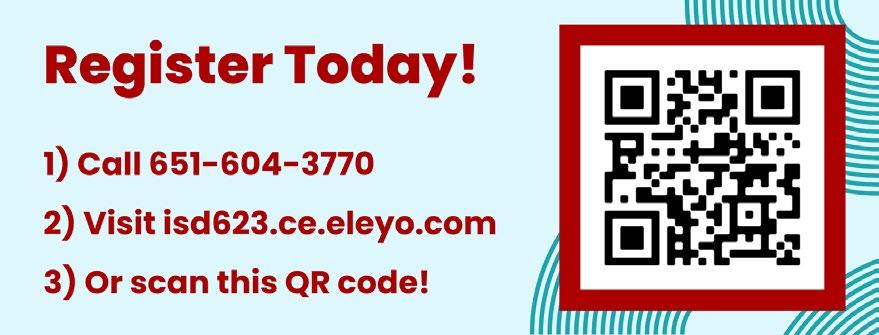 To register and learn more, visit isd623.ce.eleyo.com, call 651-604-3770, visit us at 1910 County Road B W in Roseville, or scan this QR code!