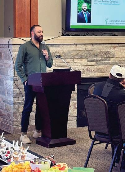 At the January 9 school board meeting, three members of the Roseville Area School Board who were re-elected on November 7, 2023 – Todd Anderson, Mike Boguszewski, and Rose Chu – took their oath of o ce. In addition, the school board held its annual organizational meeting and the following roles were lled: Board Chair Todd Anderson, Board Clerk Rose Chu, and Board Treasurer Mannix Clark. Pictured at left are the members of the Roseville Area School Board: (back l-r) Kitty Gogins, Mike Boguszewski, Rose Chu (front l-r) Todd Anderson, Curtis Johnson, and Mannix Clark.