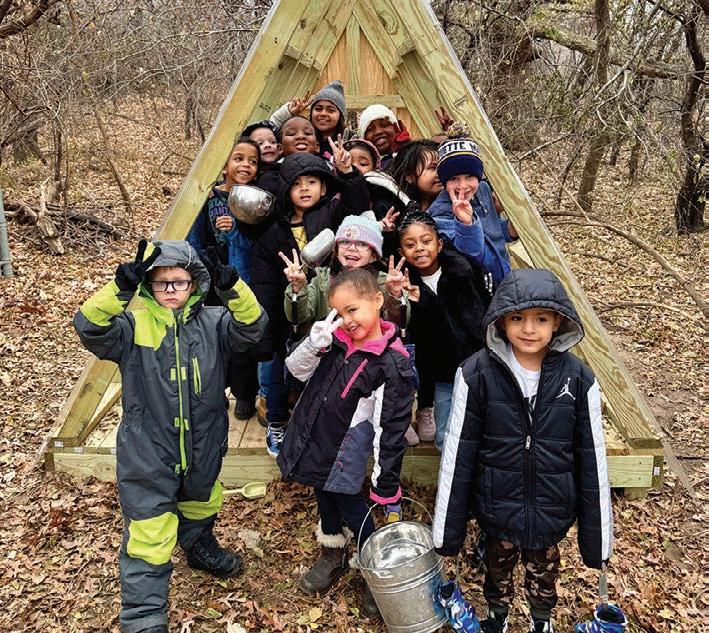 As one of five Minnesota schools to receive a grant to implement outdoor learning in kindergarten classrooms, Harambee Elementary School used the grant funds to purchase a variety of items for outdoor play and exploration including an outdoor A-frame, a water cascade, a mud kitchen, and outdoor tools for students to use.