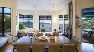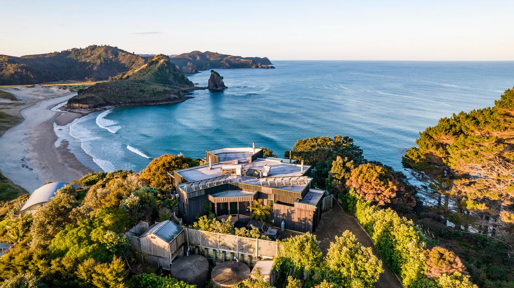 The property is spread across three titles and looks out over Awana, one of “the most gorgeous white sand surf beaches” in New Zealand