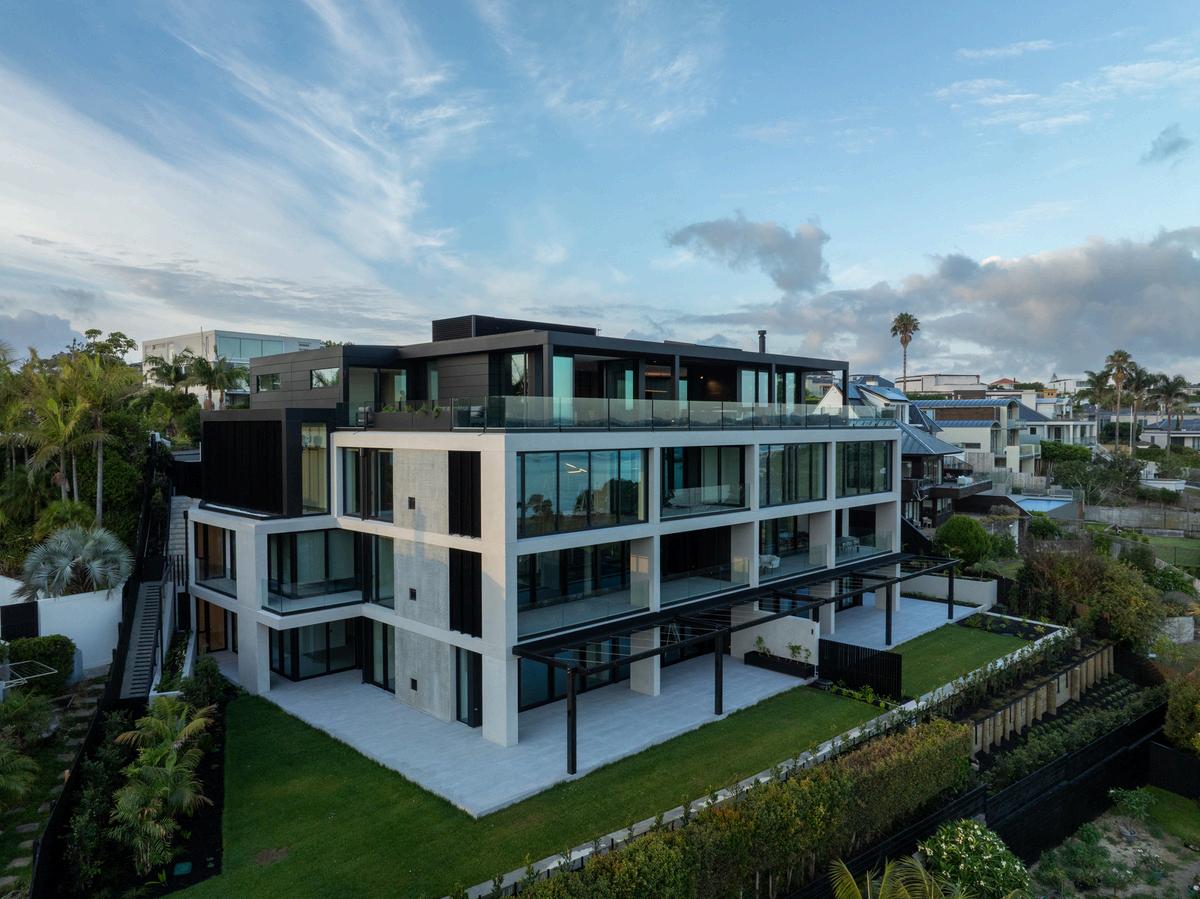 Designed by award-winning architects Warren & Mahoney the premium home itself encompasses over 958 sqm of extraordinary living, providing a stunning upper master ensuite bedroom with deck and water views, three double bedrooms plus a separate guest wing with ensuite bedroom, outdoor bath and its own lounge