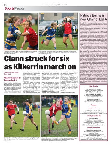 Clann struck for six as Kilkerrin march on Connacht LFGA Club SC Semi-Final Kilkerrin-Clonberne 6-22 Clann na nGael 0-4 Clann na nGael may have ended Kilbride’s dominance of the ladies football scene in Roscommon this year but they could do little to halt the Kilkerrin-Clonberne juggernaut at Johnstown on Sunday last. The reigning Connacht champions were in irresistible form as they