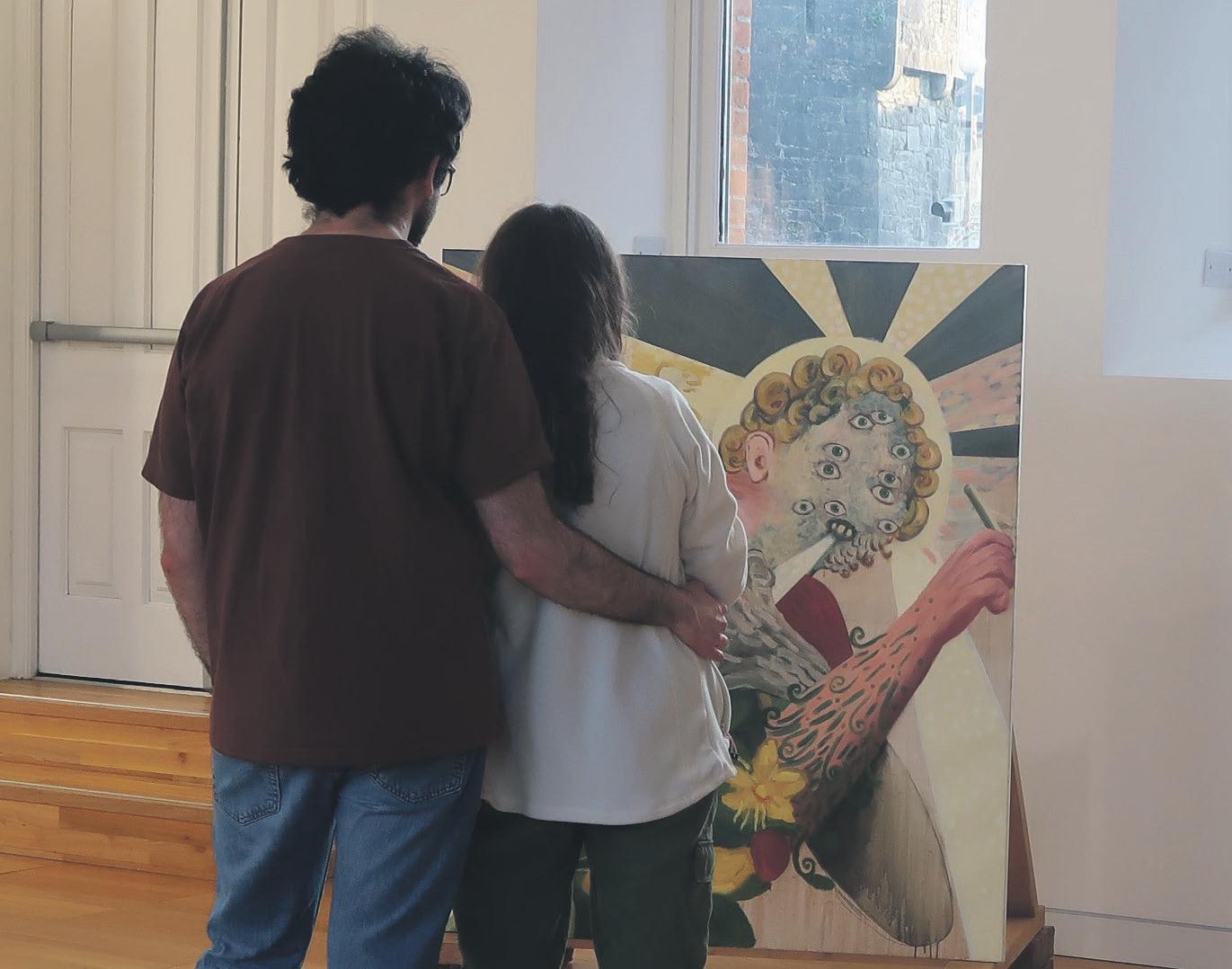 I was a bit hyper because we’d blagged our way into the gallery. Plus I had those couple of pints. All I did was shout down to my new pals – Danny and Mattie –there was no need for the usher to be so… responsive!