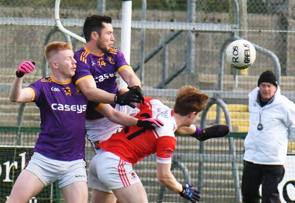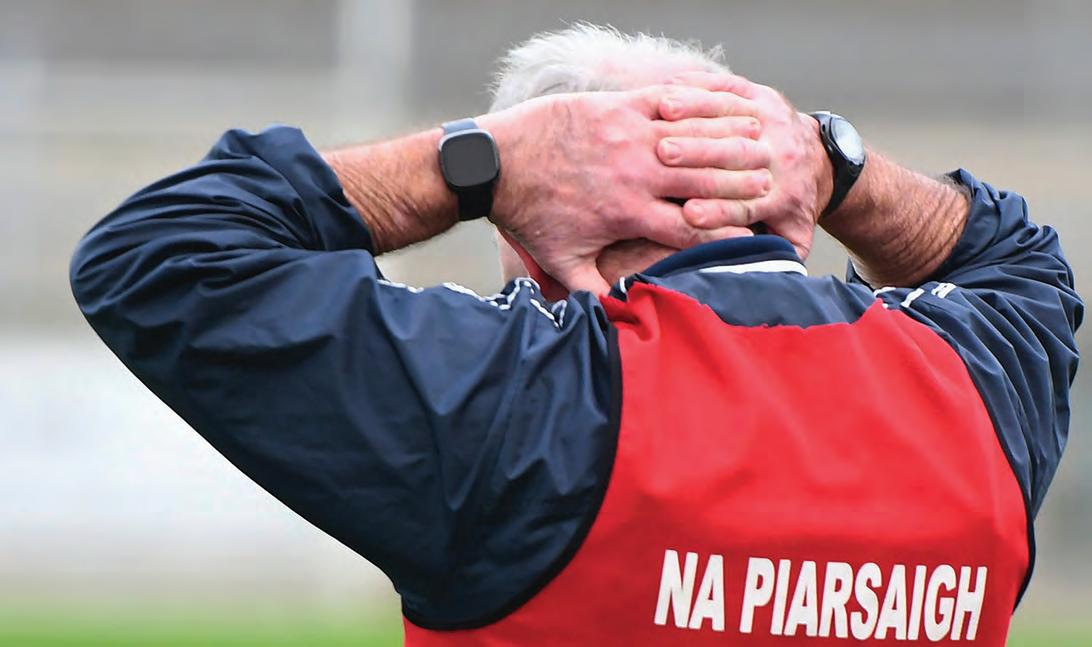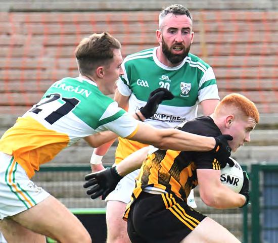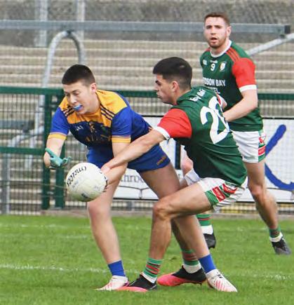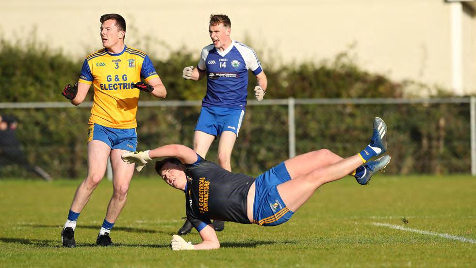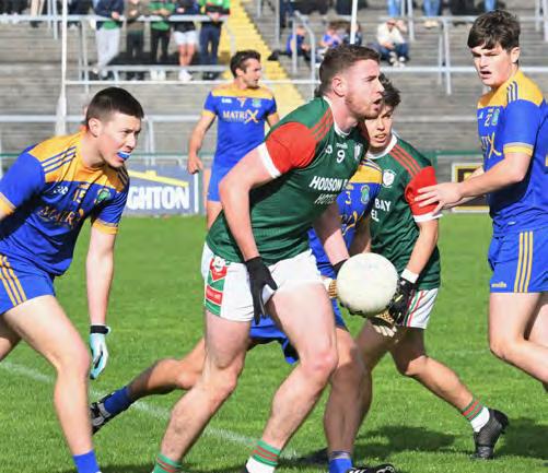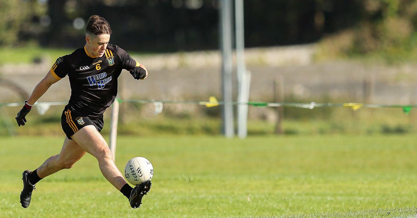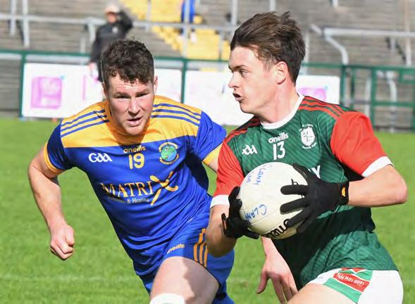 Instead, it was a fired up Roscom mon Gaels who kicked into gear and began to assert themselves as the half wore on. The Gaels brought impres sive intensity to this game, in contrast to a more subdued Pearses. Richard Hughes registered the Gaels’ first point of the afternoon, before the same player picked out the oncoming Kieran Kilcline to land a score from almost 50 metres out. Despite Kilcline having number three on his back, he wasn’t afraid to get forward and contribute to the attack.