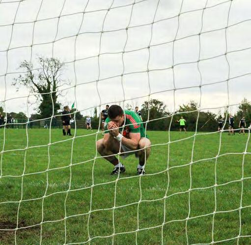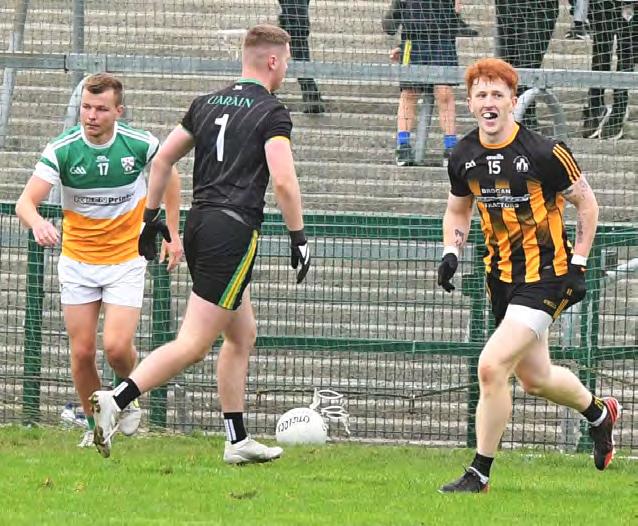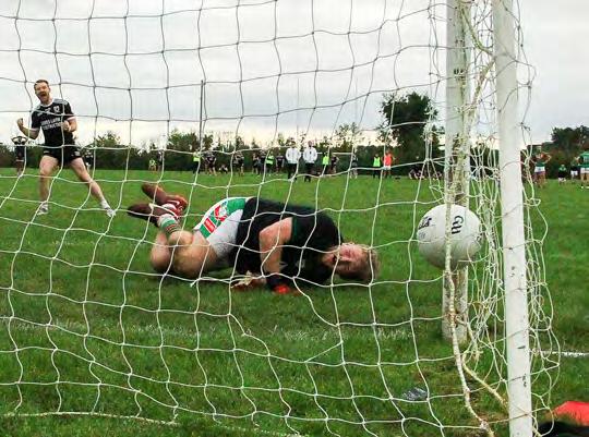 By the 54th minute, the teams were level at 0-10 apiece. That’s when Ci arán Regan produced an inspirational and memorable goal. Regan exchanged passes with Timmy Gibbons before fir ing an unstoppable shot past Paul Bran don. It was a fantastic goal which gave Strokestown great momentum.