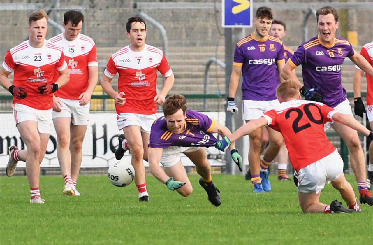 opening 10 minutes of this game before Boyle scored a fortunate goal in the 12th minute. It came when the Glavey’s de fence failed to clear the ball, Cian Mc Keon pouncing to fire past goalkeeper Darren O’Malley.