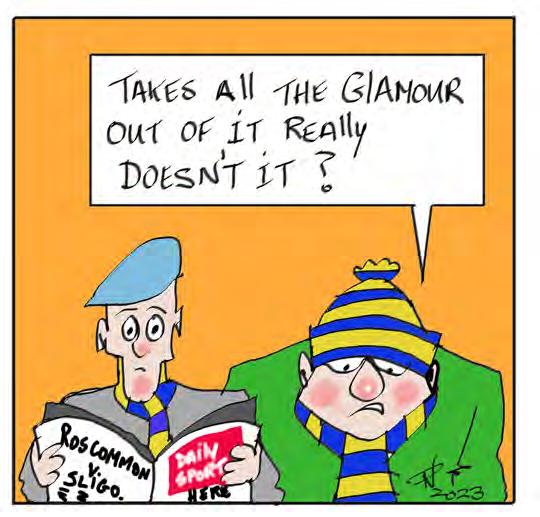 VOLUME: 817 The Local Paper The BIGGEST readership of ANY Roscommon newspaper! Readership is now 80,000 people every week! www.roscommonpeople.ie 13 January 2023 ABBEY STREET, ROSCOMMON Tel. (090) 66 34633 advertising@roscommonpeople.ie news@roscommonpeople.ie sport@roscommonpeople.ie FREE Golf Links Road, Roscommon (090) 66 37620 iles and athrooms January Sale Now on Mob.: 086 1914565 Michael Fitzmaurice TD Please ring the Constituency Office in advance to make an appointment, tel: 090 66 28479 or email michael.fitzmaurice @oireachtas.ie Michael.Fitzmaurice@Oireachtas.ie CASEY’S ROSCOMMON Kerosene 1.08.9c per litre Green Diesel 1.09.9c per litre (Prices correct at time of print) J Keane & Sons PARTS & SERVICE Lansboro St, Roscommon T: 090 66 26316 vwjk.ie Lanesboro St., Roscommon The Square, Roscommon Tel.: 090 6626270 or 087 6500931 Frances’ Finishing Touches Contact Frances on 087 6500931 Open 9.30 - 6.00 pm For all your school projects! Lubricants Fuel Cards Commercial For the best value on home heating oil and Agri fuels Never run out of oil again with our NEW Oil Monitor! Depot: 090 663 46 45 Jason 087 188 8114 • Joe 087 188 8115 Kevin Ireland 087 221 6127 • Matt Devane 087 188 2288 or online at www.sweeneyoil.ie Depot: 090 663 46 45 • Jason McEvoy: 087 188 8114 • Joe McEvoy: 087 188 8115 • Kevin Ireland: 087 221 6127 • Matt Devane: 087 188 2288 or online at www.sweeneyoil.ie For the best price on fuel Hynes Pharmacy Castle Street, Roscommon. Tel. (090) 66 34147 McG UINNESS Pharmacy Main Street, Roscommon T. 090 66 26193 F. 090 66 28789 Second Booster 18-49 years Appointments Available TOMMIE KELLY ELECTRICAL Athleague, Roscommon – 090 6663385 ROSCOMMON TOWN – 090 6634465 Finn Electrical Goff Street, Roscommon Tel. 090 66 25573 January Sale NOW ON Learn to drive with Roscommon Driving School 087 2295551 Wards CIRCULAR ROAD, ROSCOMMON TOWN TEL. 090 6626172 Arigna Harvest Flame Smokeless Fuel €13.99 For Stoves and Open Fires 20kg IBAL litter survey SEE PAGE 8 Byrne Carolan Cunningham LLP Solicitors All Personal Injury Matters: Motor Accidents, Workplace Accidents, Garda Compensation Claims, Medical Accidents 090 647 8433 www.bccsolicitors.ie *In contentious business, a solicitor may not calculate fees or other charges as a percentage or proportion of any award or settlement PERSONAL INJURY 30 years Proudly serving the people of Athlone for 30 years Byrne Carolan Cunningham LLP Solicitors All Personal Injury Matters: Motor Accidents, Workplace Accidents, Garda Compensation Claims, Medical Accidents 090 647 8433 www.bccsolicitors.ie *In contentious business, a solicitor may not calculate fees or other charges as a percentage or proportion of any award or settlement PERSONAL INJURY 30 years Proudly serving the people of Athlone for 30 years PROPERTY TRANSACTIONS CONTACT Byrne Carolan Cunningham LLP SOLICITORS Contact us for advice on Property Purchases, Sales, Mortgages and Site, House or Farm Transfers Proudly serving our clients for over 30 years Contact Byrne Carolan Cunningham LLP Solicitors All Personal Injury Matters: Motor Accidents, Workplace Accidents, Garda Compensation Claims, Medical Accidents 090 647 8433 www.bccsolicitors.ie *In contentious business, a solicitor may not calculate fees or other charges as a percentage or proportion of any award or settlement PERSONAL INJURY Proudly serving the people of Athlone for 30 years Contact Byrne Carolan Cunningham LLP Solicitors All Personal Injury Matters: Motor Accidents, Workplace Accidents, Garda Compensation Claims, Medical Accidents 090 647 8433 www.bccsolicitors.ie *In contentious business, a solicitor may not calculate fees or other charges as a percentage or proportion of any award or settlement PERSONAL INJURY 30 years Proudly serving the people of Athlone for 30 years Foundation Primer and Concealer now back in stock The Quad Youth Centre, Circular Road, ROSCOMMON Tuesday: 8.30am to 10.30 am Class Talk 10.30am Anne Keenan www.slimway.ie EVERYONE WELCOME ‘Use Roscommon Hospital to ease overcrowding pressure’ < PAUL