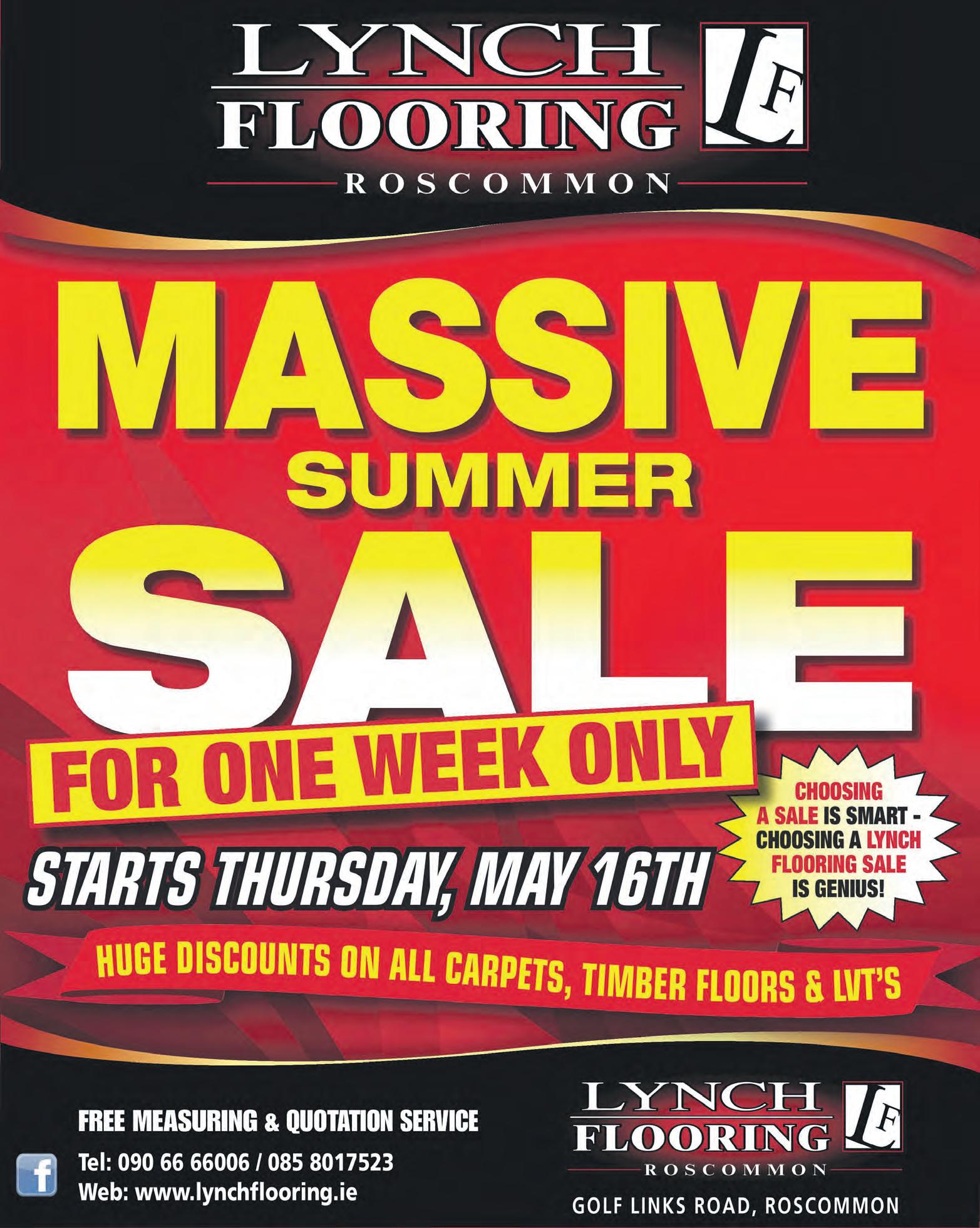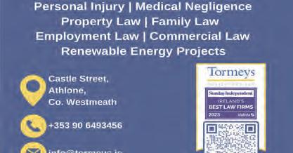 VOLUME: 886 The Local Paper The BIGGEST readership of ANY Roscommon newspaper! Readership is now 80,000 people every week! www.roscommonpeople.ie 17 May 2024 ABBEY STREET, ROSCOMMON Tel. (090) 66 34633 advertising@roscommonpeople.ie news@roscommonpeople.ie sport@roscommonpeople.ie FREE Golf Links Road, Roscommon (090) 66 37620 iles and athrooms SALE NOW ON Wall Tiles from €9.95 per sq. yd. Galway Road, Roscommon 086 3758169 / 090 662 6023 paul@advancedphysiowest.ie www.advancedphysiowest.ie Paul Lennon BSc (Hons) Chartered Physiotherapist Hynes Pharmacy Castle Street, Roscommon. Tel. (090) 66 34147 Do you need your domestic appliance repaired? If so contact us! 090 66 34465 tommiekelly.ie TOMMIE KELLY ELECTRICAL Athleague, Roscommon – 090 6663385 ROSCOMMON TOWN – 090 6634465 Byrne Carolan Cunningham LLP Solicitors All Personal Injury Matters: Motor Accidents, Workplace Accidents, Garda Compensation Claims, Medical Accidents 090 647 8433 www.bccsolicitors.ie *In contentious business, a solicitor may not calculate fees or other charges as a percentage or proportion of any award or settlement PERSONAL INJURY 30 years Proudly serving the people of Athlone for 30 years Byrne Carolan Cunningham LLP Solicitors All Personal Injury Matters: Motor Accidents, Workplace Accidents, Garda Compensation Claims, Medical Accidents 090 647 8433 www.bccsolicitors.ie *In contentious business, a solicitor may not calculate fees or other charges as a percentage or proportion of any award or settlement PERSONAL INJURY 30 years Proudly serving the people of Athlone for 30 years MEDICAL ACCIDENTS CONTACT Byrne Carolan Cunningham LLP SOLICITORS Dedicated Medical Negligence Department Proudly serving our clients Contact Byrne Carolan Cunningham LLP Solicitors All Personal Injury Matters: Motor Accidents, Workplace Accidents, Garda Compensation Claims, Medical Accidents 090 647 8433 www.bccsolicitors.ie *In contentious business, a solicitor may not calculate fees or other charges as a percentage or proportion of any award or settlement Proudly serving the people of Athlone for 30 years Contact Byrne Carolan Cunningham LLP Solicitors All Personal Injury Matters: Motor Accidents, Workplace Accidents, Garda Compensation Claims, Medical Accidents 090 647 8433 www.bccsolicitors.ie *In contentious business, a solicitor may not calculate fees or other charges as a percentage or proportion of any award or settlement PERSONAL INJURY 30 years Proudly serving the people of Athlone for 30 years ROCKFIELD, CO. ROSCOMMON, F42 N510 Tel. (090) 662 7460 • Email: neilanelectrical@gmail.com NEILAN’S GARDEN EQUIPMENT J Keane & Sons PARTS & SERVICE Lansboro St, Roscommon T: 090 66 26316 vwjk.ie Lanesboro St., Roscommon T.: 090 66 26315 Lubricants Fuel Cards Commercial For the best value on home heating oil and Agri fuels Never run out of oil again with our NEW Oil Monitor! Depot: 090 663 46 45 Jason 087 188 8114 • Joe 087 188 8115 Kevin Ireland 087 221 6127 • Matt Devane 087 188 2288 or online at www.sweeneyoil.ie Depot: 090 663 46 45 • Jason McEvoy: 087 188 8114 • Joe McEvoy: 087 188 8115 • Kevin Ireland: 087 221 6127 • Matt Devane: 087 188 2288 or online at www.sweeneyoil.ie For the best price on fuel Senator Seanad Spokesperson CommunityAffairs Rural and the Islands Clinics available at all times. Tel. 087 1668775 Email: eugene.murphy@oireachtas.ie Eugene MURPHY Finn Electrical Go Street, Roscommon Tel. 090 66 25573 CASEY’S ROSCOMMON Contact 090 66 38000 CHRISTY CONNOLLY RECOVERY CASTLEREA, CO. ROSCOMMON TEL. 094 9620793 MOB. 086 2505325 / 087 2505325 E: christyconnollymotors@gmail.com • Approved recyclers of end of life vehicles • Destruction certs issued • 24/7 recovery service available nationwide CLLR. LIAM CALLAGHAN COUNCILLOR FOR THE BOYLE AREA CONTACT ME WITH ANY ISSUES ON 086 3325839 or cllrlcallaghan@roscommoncoco.ie New Ninja Double Stack Airfryer SL 400UK now in stock The Square, Roscommon Tel.: 090 6626270 or 087 6500931 Frances’ Finishing Touches Contact Frances on 087 6500931 Open 9.30 - 6.00 pm Large range of BLACKOUT CURTAINS in stock McG UINNESS Pharmacy Main Street, Roscommon T. 090 66 26193 F. 090 66 28789 Special Offer –HALF PRICE HEGARTY Plant Hire Call for more info on 087 2536428 or 086 6676424 Keen Rates For Hire of Micro-12t Digger, Dumpers, Rollers, Teleporter, Rock Breakers and Hedgecutter Timemaster now in stock • 30" CUT New Men's Fragrance HUGO BOSS Triumph Elixir Wards Circular Road, Roscommon town Tel. 090 6626172 SIENNA RATTAN 160cm Rectangular 6 Seater Set €699 Main Street Carrick On Shannon | 0871720959 | 0719611007 | martin@celticwizard.ie | FREEQUOTATIONSFOR SCHOOLSANDBUSINESSES Main Street Carrick On Shannon | 0871720959 | 0719611007 | martin@celticwizard.ie | FREEQUOTATIONSFOR SCHOOLSANDBUSINESSES Main Street Carrick On Shannon | 0871720959 | 0719611007 | martin@celticwizard.ie | FREEQUOTATIONSFOR SCHOOLSANDBUSINESSES