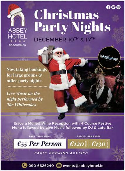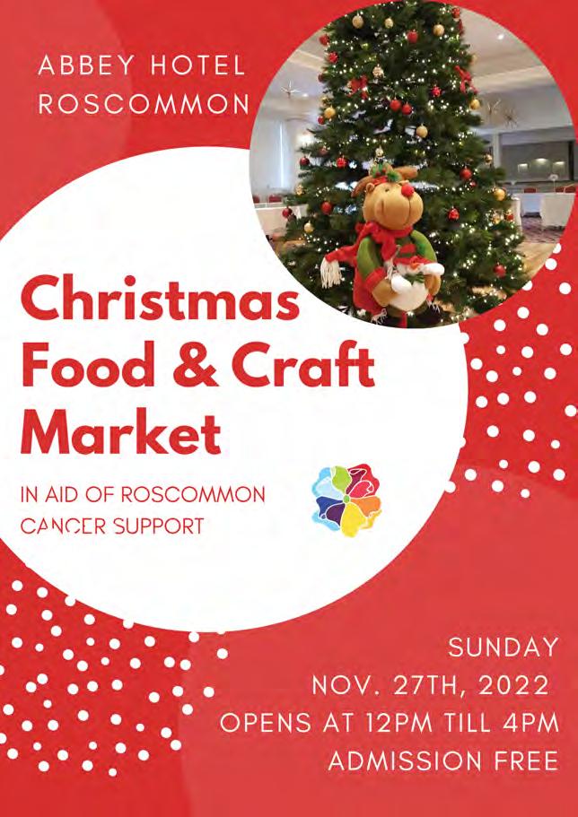 Finn Electrical Goff Street, Roscommon Tel. 090 66 25573 VOLUME: 810 The Local Paper The BIGGEST readership of ANY Roscommon newspaper! Readership is now 80,000 people every week! www.roscommonpeople.ie 18 November 2022 ABBEY STREET, ROSCOMMON Tel. (090) 66 34633 advertising@roscommonpeople.ie news@roscommonpeople.ie sport@roscommonpeople.ie FREE Golf Links Road, Roscommon (090) 66 37620 iles and athrooms SALE NOW ON Mob.: 086 1914565 Michael Fitzmaurice TD Please ring the Constituency Office in advance to make an appointment, tel: 090 66 28479 or email michael.fitzmaurice @oireachtas.ie Michael.Fitzmaurice@Oireachtas.ie CASEY’S ROSCOMMON Kerosene 1.22.9c per litre (Price correct at time of print) J Keane & Sons PARTS & SERVICE Lansboro St, Roscommon T: 090 66 26316 vwjk.ie Lanesboro St., Roscommon Learn to drive with Roscommon Driving School 087 2295551 TOMMIE KELLY ELECTRICAL Athleague, Roscommon – 090 6663385 ROSCOMMON TOWN – 090 6634465 www.tommiekelly.ie Lubricants Fuel Cards Commercial For the best value on home heating oil and Agri fuels Never run out of oil again with our NEW Oil Monitor! Depot: 090 663 46 45 Jason 087 188 8114 • Joe 087 188 8115 Kevin Ireland 087 221 6127 • Matt Devane 087 188 2288 or online at www.sweeneyoil.ie Depot: 090 663 46 45 • Jason McEvoy: 087 188 8114 • Joe McEvoy: 087 188 8115 • Kevin Ireland: 087 221 6127 • Matt Devane: 087 188 2288 or online at www.sweeneyoil.ie For the best price on fuel The Square, Roscommon Frances’ Finishing Touches Contact Frances on 087 6500931 Open 9.30 - 6.00 pm Full new range of Flannelette Sheets in Stock GREAT DEALS ON TVs Call in store now in store Hynes Pharmacy Castle Street, Roscommon. Tel. (090) 66 34147 McG UINNESS Main Street, Roscommon T. 090 66 26193 F. 090 66 28789 PROTECT YOURSELF AND OTHERS THIS FLU SEASON DON'T FORGET YOUR FLU VACCINATION FLU VACCINATION NOW AVAILABLEBookings Available Byrne Carolan Cunningham LLP Solicitors NATIONWIDE 090 6478433 / 091 511421 Irish Law Awards 2022 www.bccsolicitors.ie SPECIALISING IN: Personal Injury & Medical Negligence Law, Property Matters, Wills & Inheritance Wards CIRCULAR ROAD, ROSCOMMON TOWN TEL. 090 6626172 FIREHEAT SMOKELESS OVOIDS FOR ALL FIRES 40k Bag €29 BLACK FRIDAY SPECIALS NEW ‘Spa at Home’ Treatment Pack ‘SISTER ACT’ SEE INSIDE Noah with his friends, Dillan Cryan, Ethan Coy and Liam Dickson during last Sunday’s Junior B Football final between Castlerea St. Kevin’s and Tulsk Lord Edwards at a very wet Enfield. Pic: Bernie O’Farrell