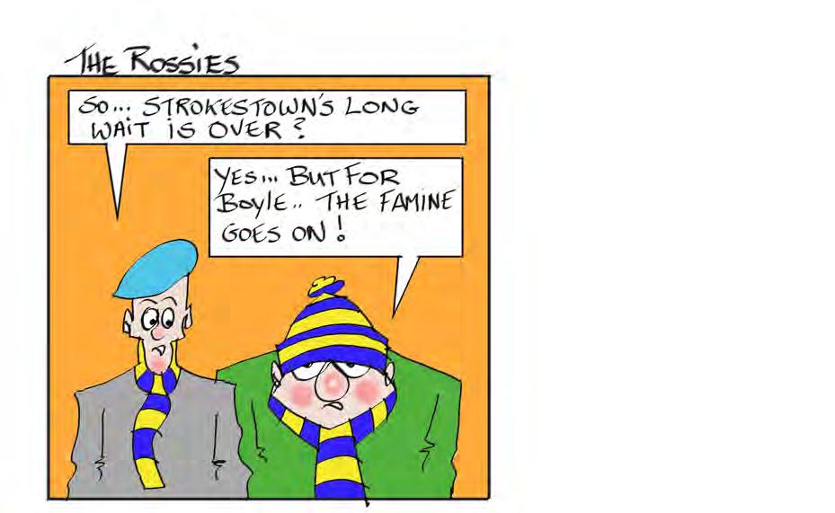 For Strokestown, being crowned 2022 county cham pions is a sensational achieve ment. Sean Mullooly, Diarmuid McGann, David Neary, Colin Compton and Shane McGinley were just some of their play ers who caught the eye, but they are all heroes. The most outstanding of all was Colm Neary, who seemed at times to have his own ball. Then there was Tony, who ended the ten sion and sprinkled stardust on Strokestown.