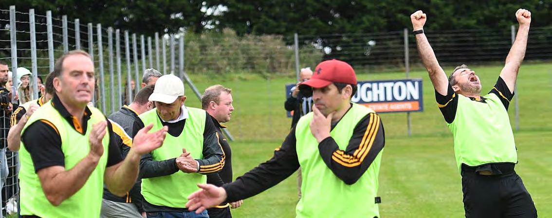 Members of the Four Roads management team celebrate at the final whistle after their win over Athleague in Sunday’s Roscommon SHC semi-final. Photo: Mick McCormack Kepak Roscommon SHC semi-final Micheal Kelly was in inspirational form for Four Roads in their win over Athleague on Sunday. Photo: Mick McCormack Athleague: David Connell; Alan Moore, Mark Ward, Darragh Mul len; Niall Connolly, Eoghan Coyle, Aengus Lyons; Darragh Heavey (01), Ben McGahon (0-9, 1 65, 1 s/l, 6 frees); Cormac Kelly, Cian Murray (03), Eoin Ward; Tomas Connaughton, Gary Fallon, Daniel Crehan. Subs: David Delaney for Moore (16), Tadhg Lyons for Connaughton (35), Stephen Kilcommins for Fallon (42), Naoise Coyle for Crehan (52). Referee: Matthew Farrell. Man of the Match Mikey Lohan (Four Roads) Niall Connolly in action for Athleague against Four Roads last Sunday. Photo: Mick McCormack