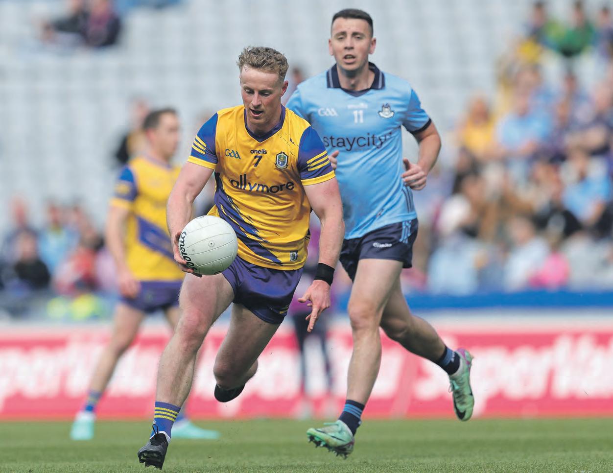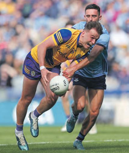 The record books will show that AllIreland champions Dublin won this championship game by 12 points, but the final margin was somewhat harsh on Roscommon. Looking at the scoring during the game, Davy Burke’s side were still well in contention with 10 minutes to go, down only three points (0-16 to 0-13). However, a late Roscommon fade-out, which coincided with Dublin really flexing their muscles for the first time in the game, saw the All-Ireland champions march to a resounding victory with two late goals and a flurry of excellent scores.