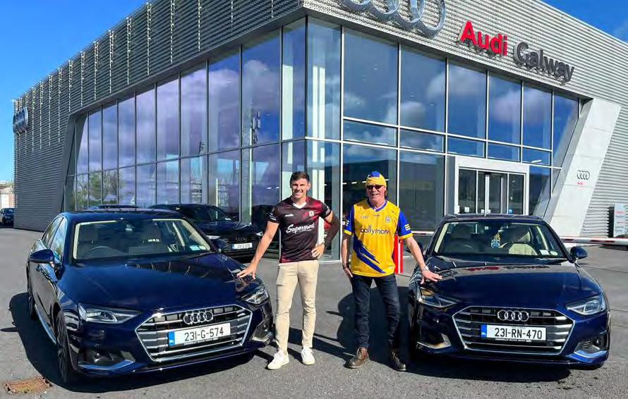 Galway footballer and Audi Brand Ambassador Shane Walsh pictured with Roscommon ‘super fan’ Paddy Joe Burke at Galway Audi recently. Paddy Joe, who recently purchased his new wheels from the dealer, said he was extremely impressed by the Galway and Kilmacud Crokes player, describing him as “a lovely lad with an awful lot of manners”.