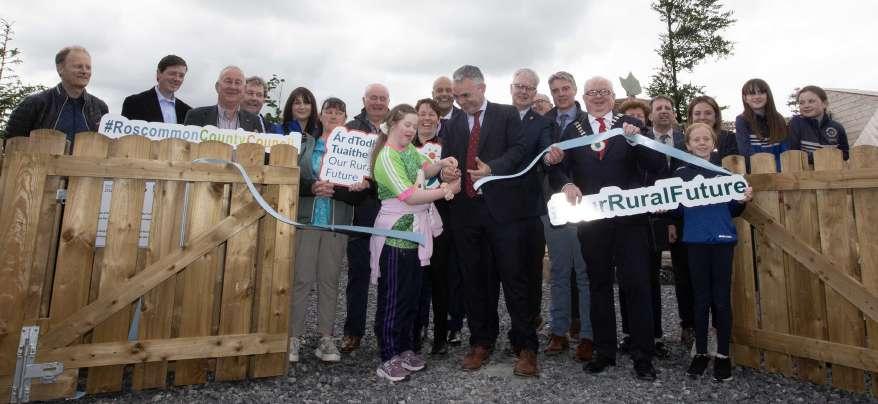 Walsh and Tara Keenahan show their shoes o to Minister Dara Calleary during his visit to County Roscommon last week (where he opened a number of new facilities).