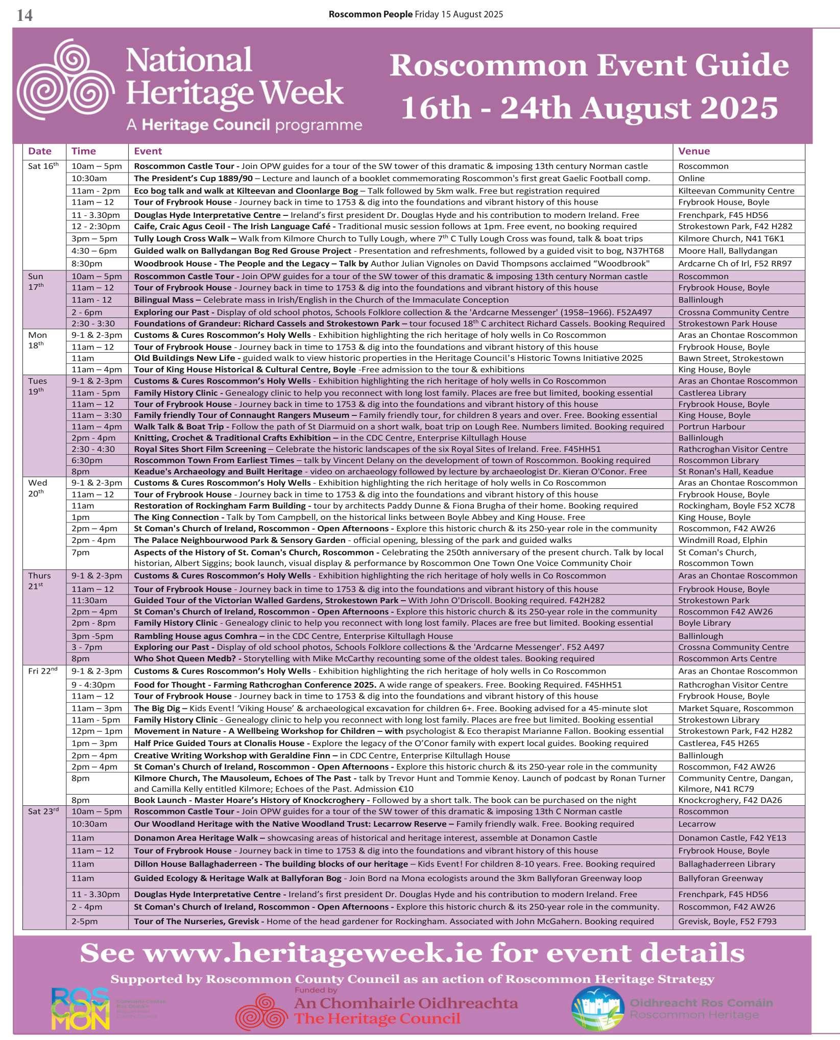 Scheme information and Application Forms are available on www.roscommoncoco.ie or by contacting the Heritage Office on 090 6637135 or heritage@roscommoncoco.ie