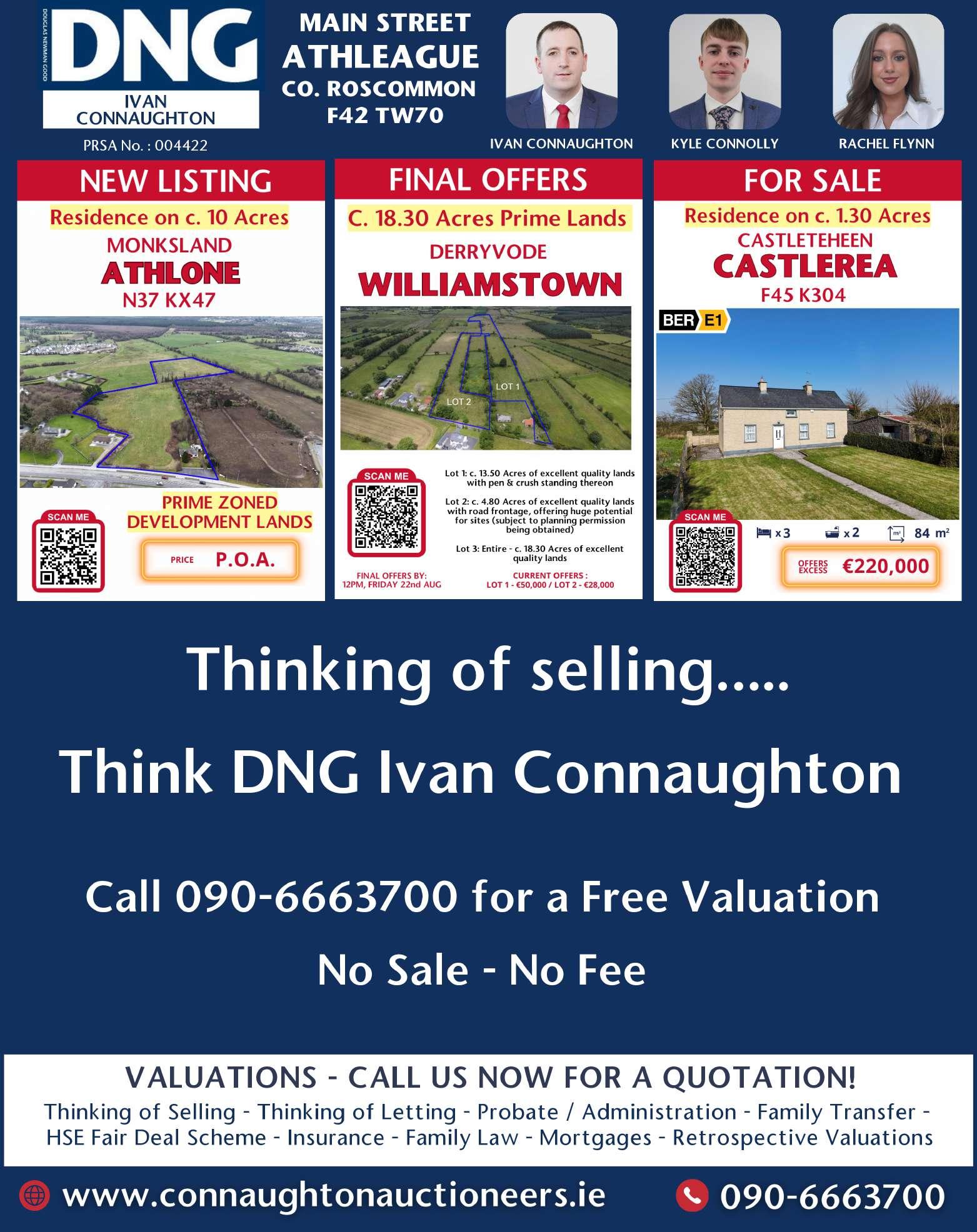 Objections in respect of the proposed closure may be made in writing to the Roads and Transportation Department or e-mailed to roads@roscommoncoco.ie to arrive not later than 5pm on Wednesday 20th August 2025.