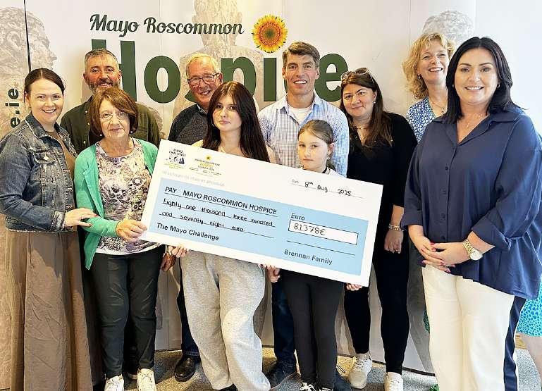 Martina Jennings, CEO of Mayo Roscommon Hospice Foundation, said: “The Brennan family’s generosity and determination have been nothing short of inspiring. This huge donation will go a long way in supporting those in our community who are living with life-limiting illnesses, ensuring they receive the compassionate, specialist care they deserve.”