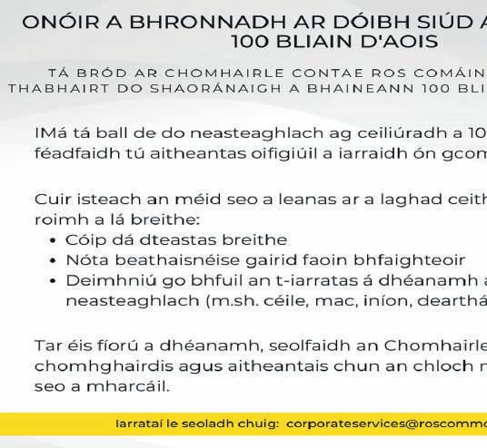 A cake sale and co ee morning will be held in Rahara National School after 10 o’clock Mass on Sunday, August 3rd, in aid of Fr Pat Bannon’s Missionary Fund. Support would be greatly appreciated. A ra e will be held on the day. All are welcome to attend.