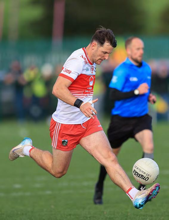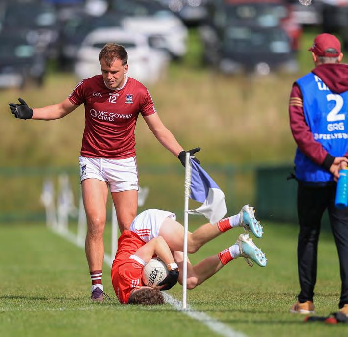 But strangely, St Brigid’s went out of the game after that. The Gaels got their hands on more ball and the Kiltoom side went 18 minutes without a score. In the 14th minute Conor Carroll’s kickout went straight to Gaels midfielder Mark Purcell, who found Ryan Dowling. The ex-Kilbride man played a superb pass over the top of the St Brigid’s defence and into the path of John McGuinness, the corner-forward flicking the ball over the onrushing Carroll for a welltaken goal.