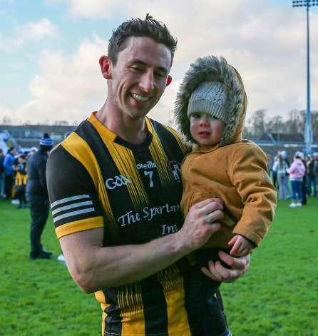Strokestown captain Colin Compton celebrating with his son Rory after leading his team to victory against Kilmeena in MacHale Park last Sunday. Strokestown won by 4-11 to 0-14. Photo: Bernie O’Farrell