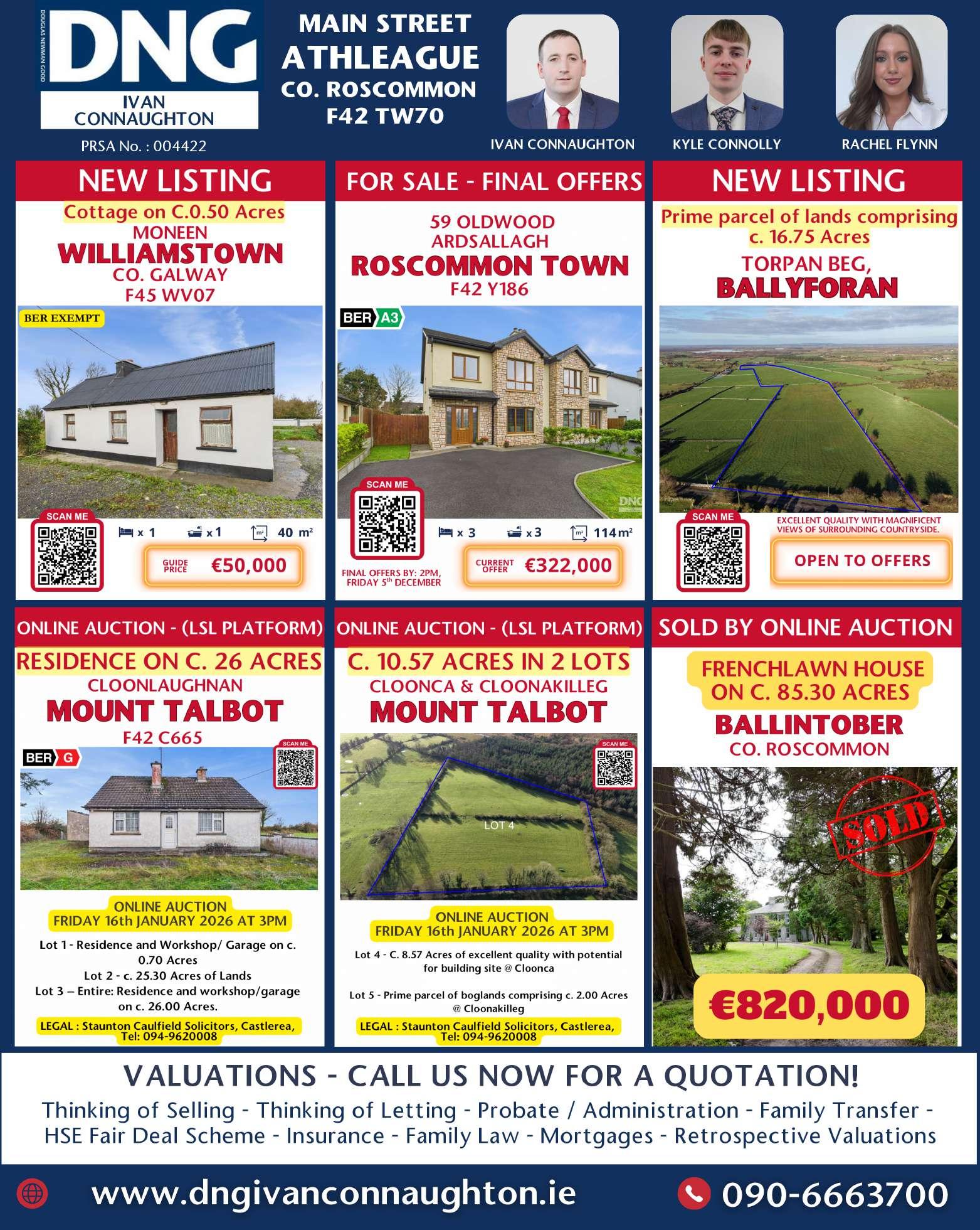 Any donations of items for auction will be welcomed, no matter how big or small – turf, timber, bale(s) of silage, straw or hay, bottle(s) of wine, or spirits, tools, vouchers, hampers. All donations and your support on the night would be greatly appreciated.