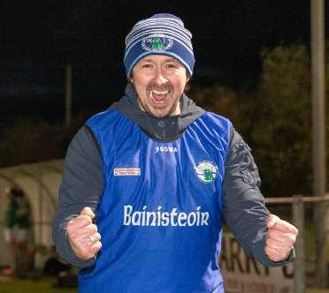 Tommy Egan, manager of Oran/St Croan’s, celebrates his team’s win in last Saturday’s Hannon’s Hotel U-20 Division Two Football final. Photo: Bernie O’Farrell
