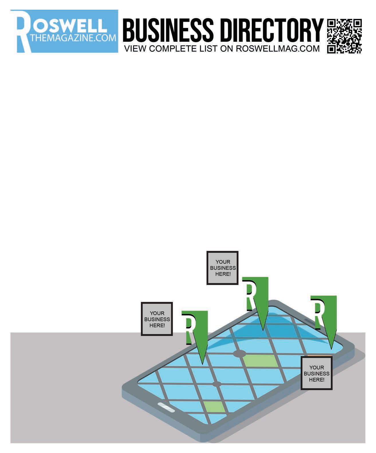 Roswell The Magazine email: info@roswellmag.com with your business info to be added to our directory for FREE. Visit our website roswellmag.com to see our online directory and map system in action like below.