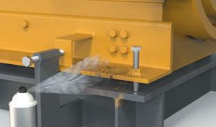 All non-treated (carbon) steel RotaChock® have the threads and spherical top part lubricated with Molykote® P-37 AntiSeize Paste or similar. It must remain on the RotaChock® when installed. The outer surfaces are coated with LPS 3® Premier Rust Inhibitor or similar. This should be cleaned off the top and base surface of the chock.