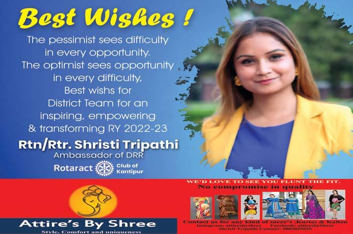 My best wishes and hearty congratulations to District Rotaract Representative (DRR), his team members and all friends for upcoming Rotary Year 2022-2023.