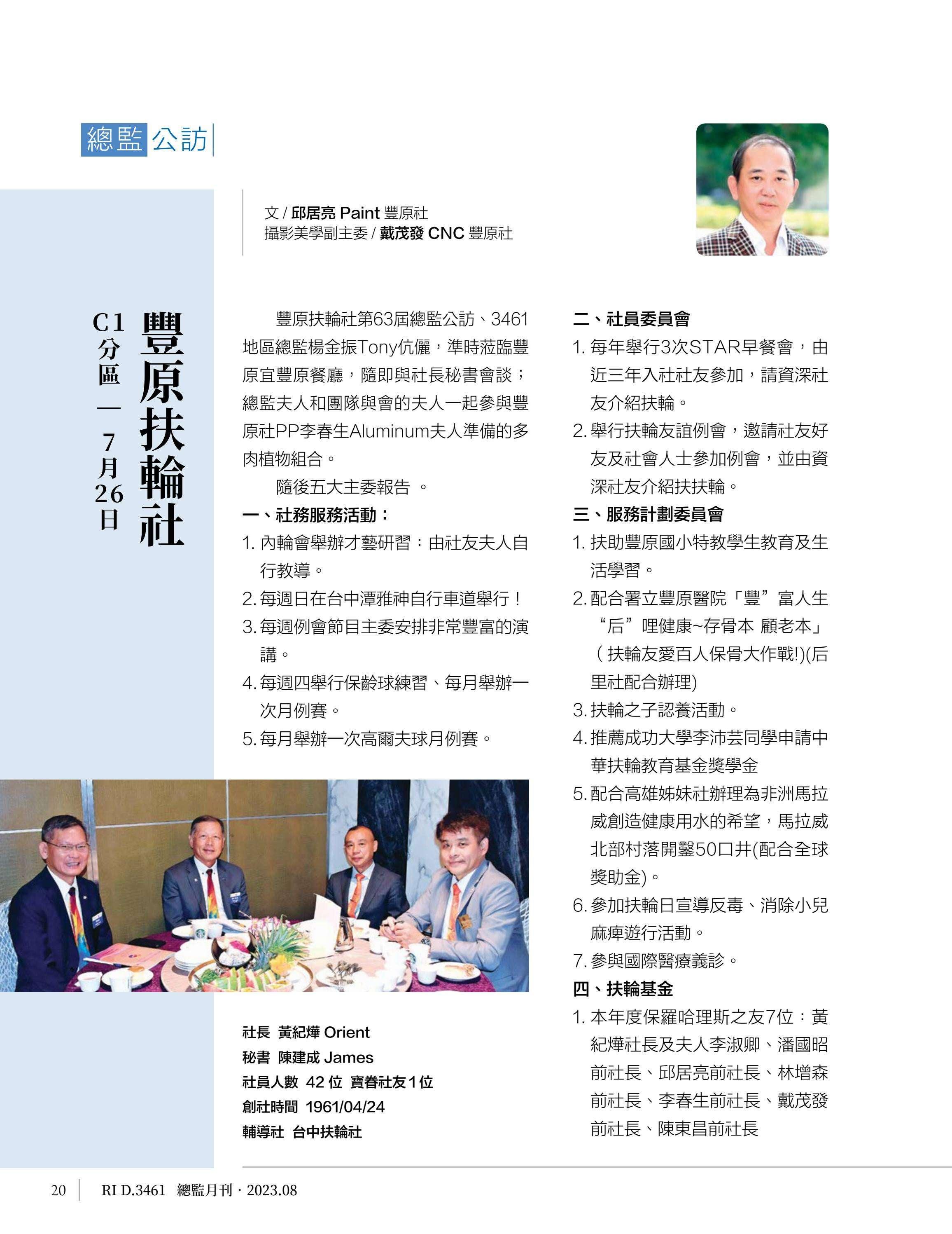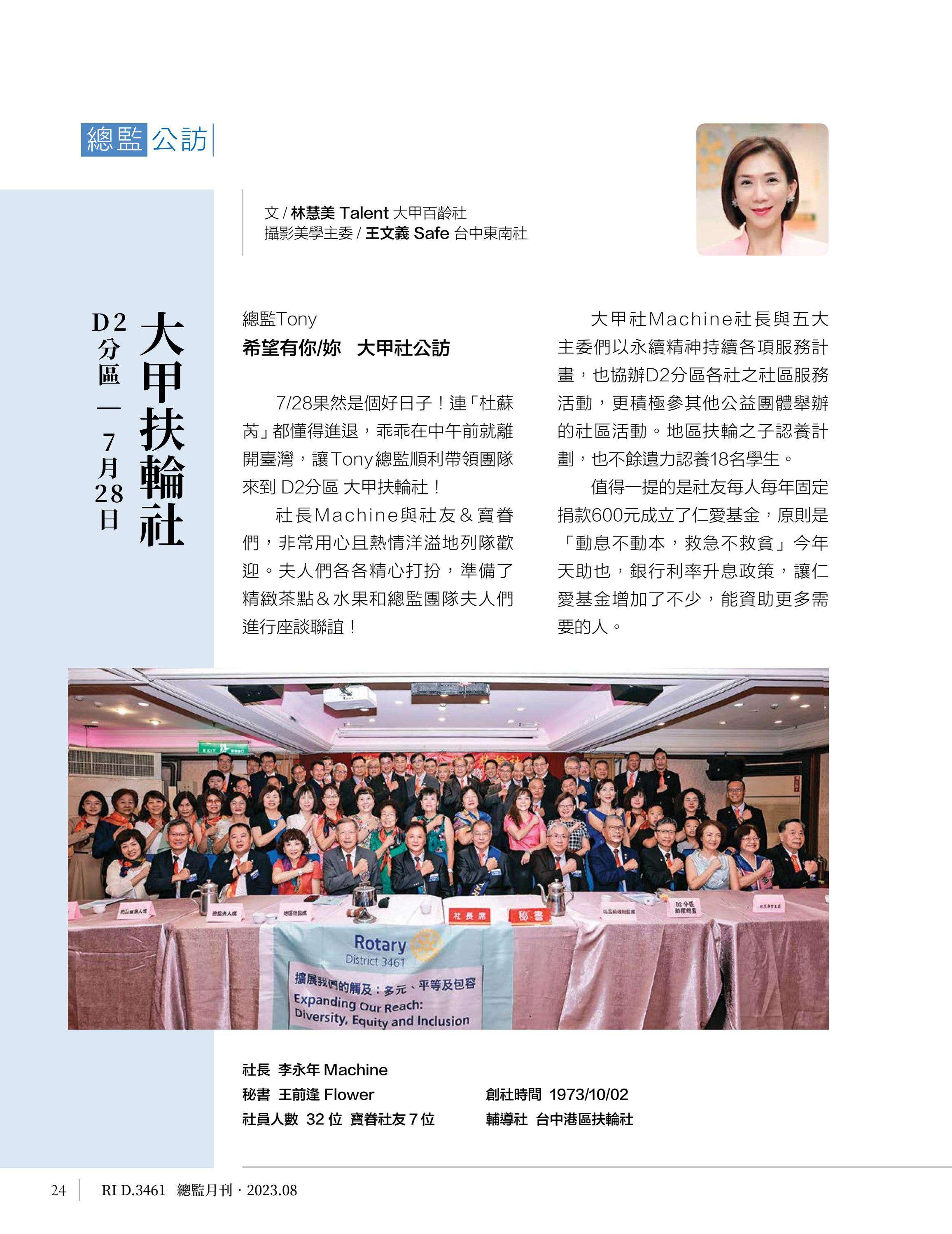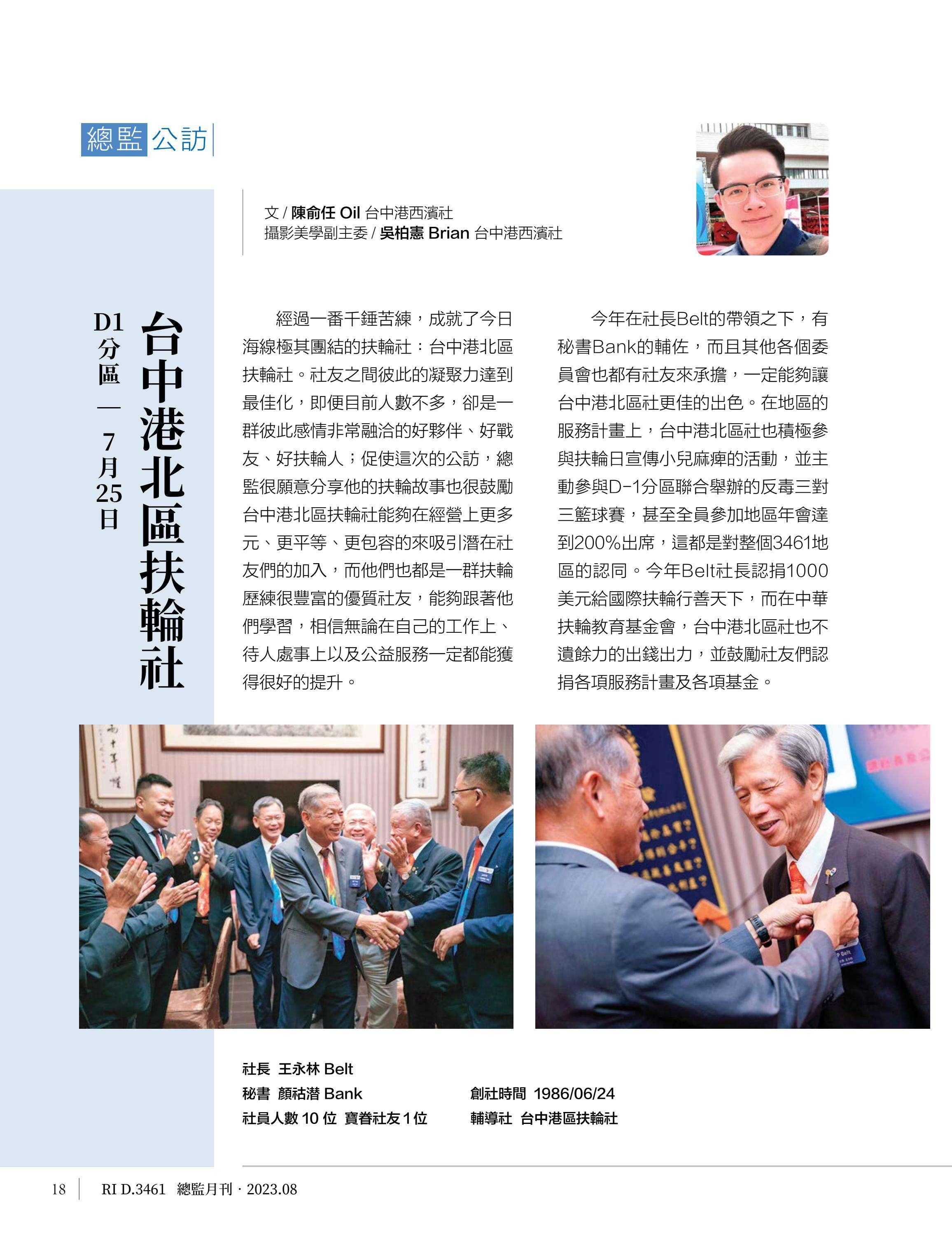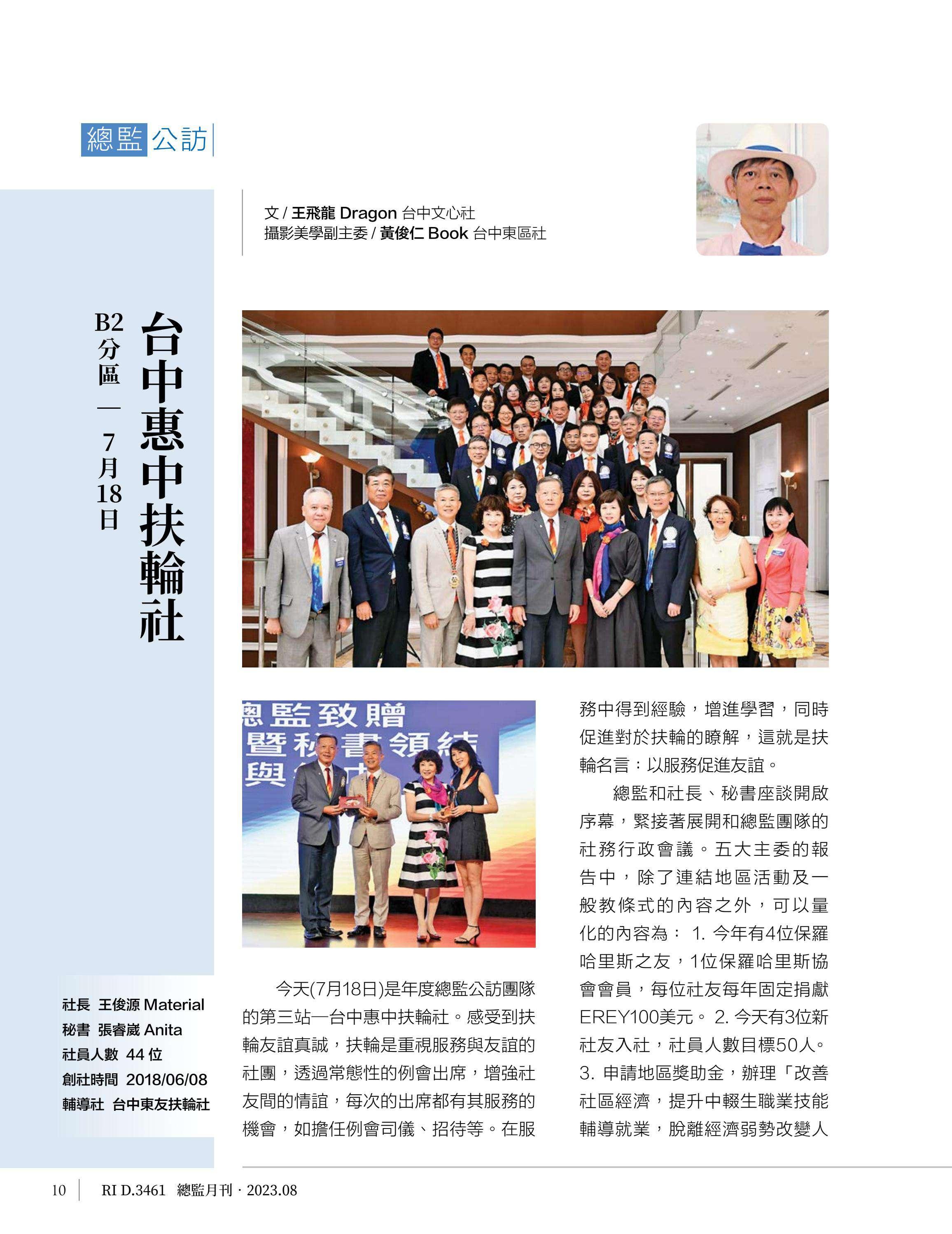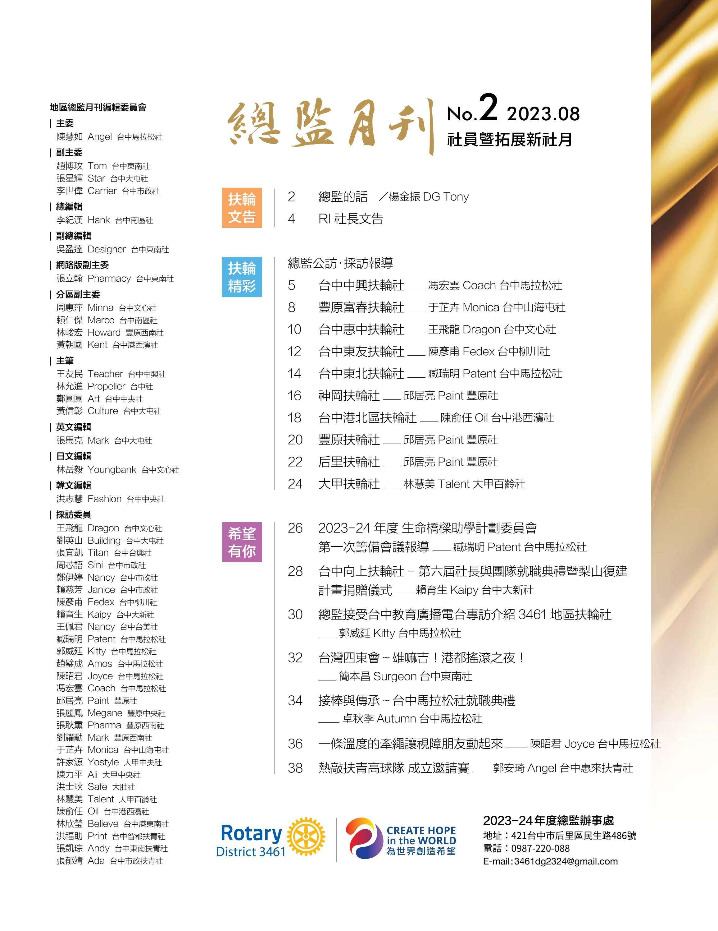 總監月刊-2023年08月(國際扶輪3461地區)介紹
