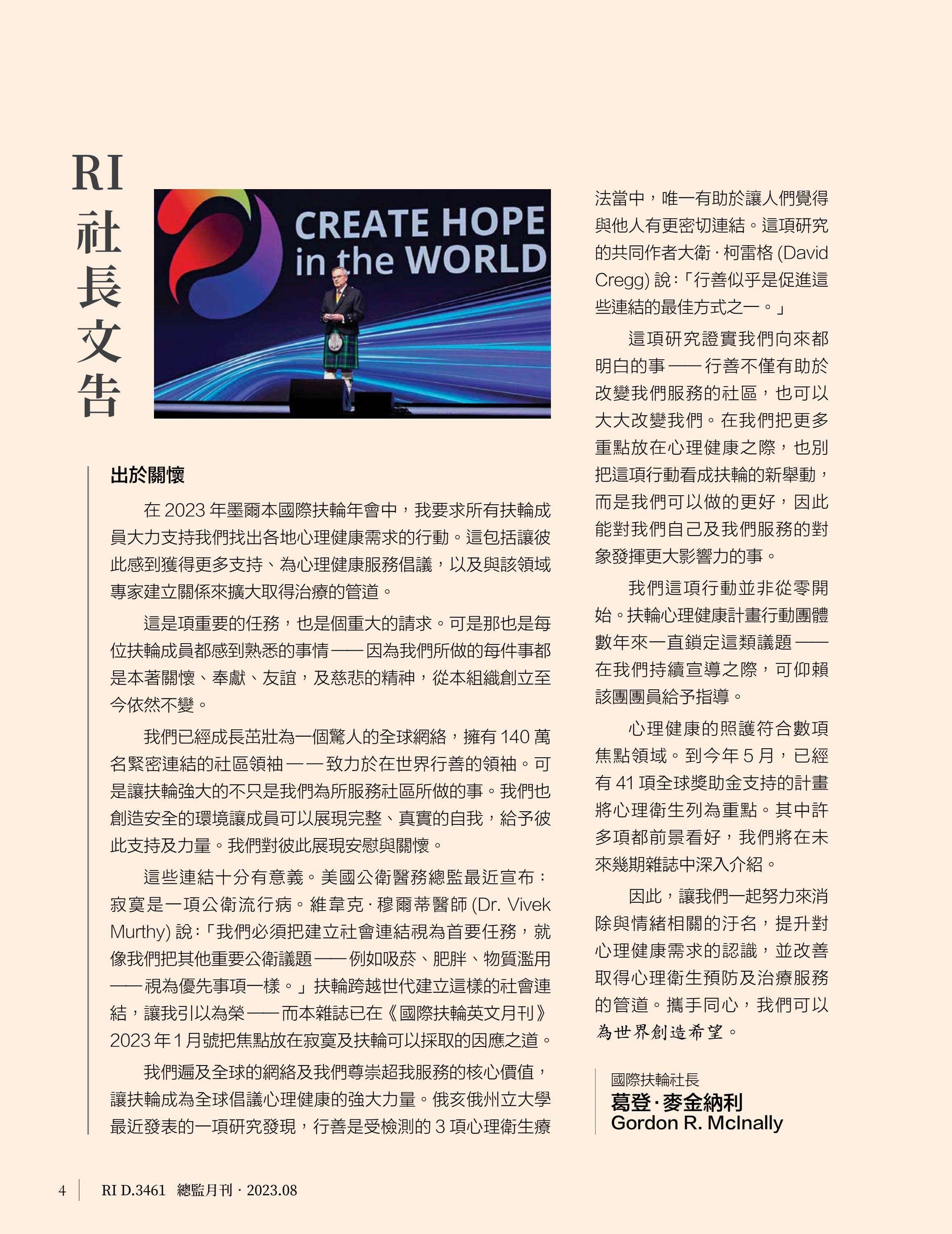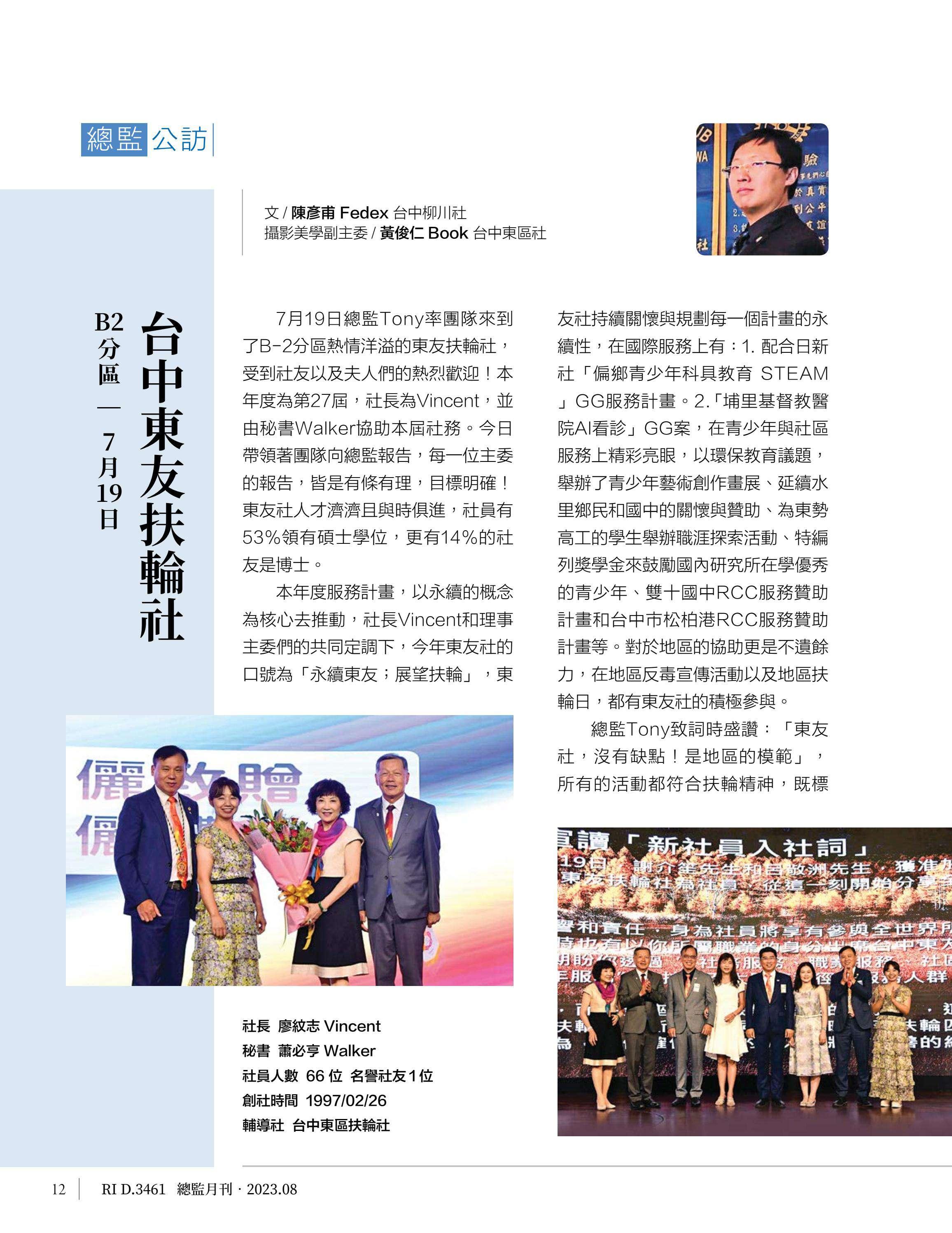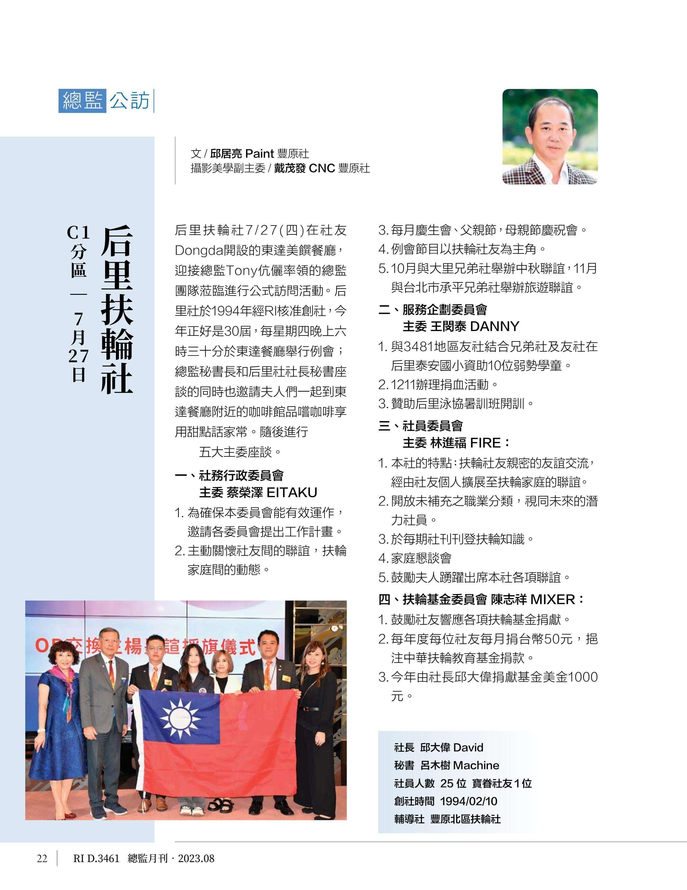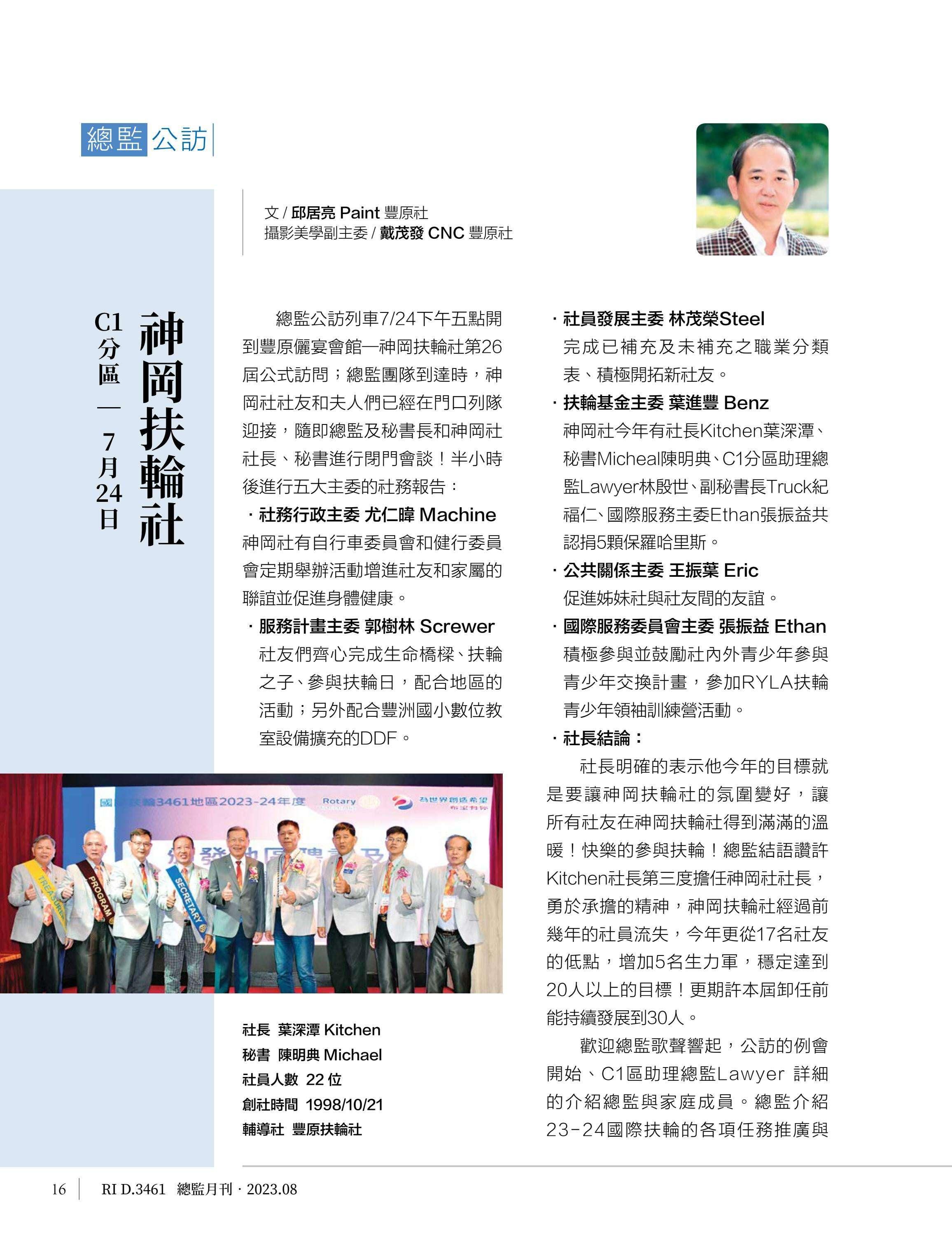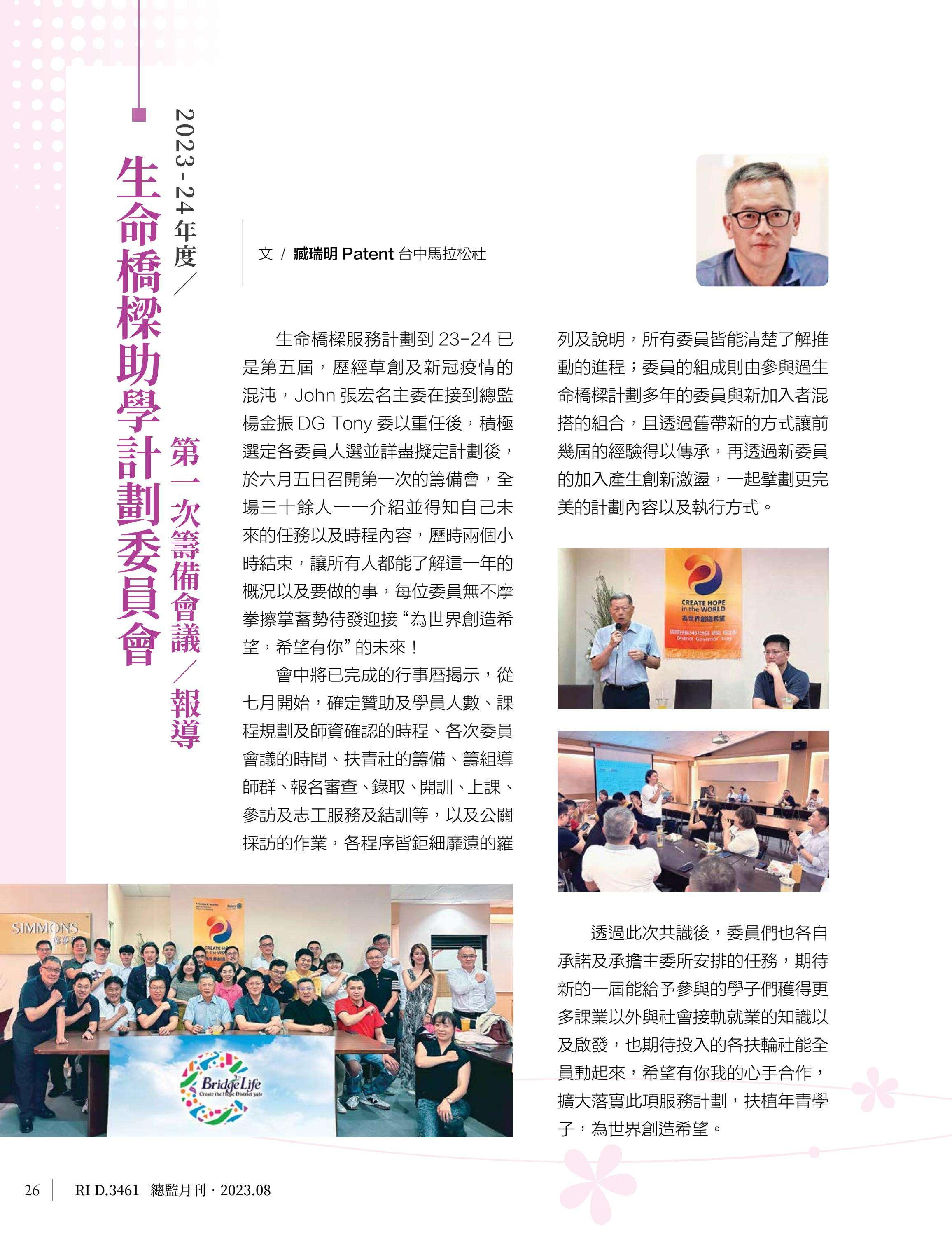 總監月刊-2023年08月(國際扶輪3461地區)介紹