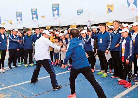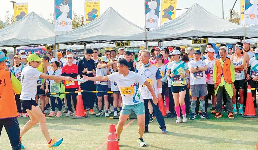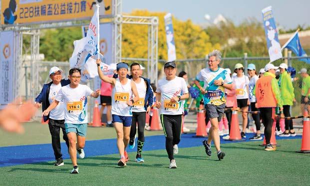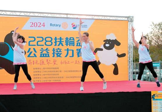 每年的228路跑接力賽,彷彿成了3461及 3462地區的扶輪社社友、寶眷、尊眷及小扶 輪,交流聯誼的運動年會。這次的主辦社主委 是由我們台中馬拉松社P.P. Kitchen擔任代表 3461地區與3462地區主委Cloud,一起辦了 這個賽事;報名人數更勝以往,將近有2200人 報名參加各項賽事。展現扶輪社友除了在公益 活動的積極參與外,更是愛自己、愛健康的最 佳詮釋。