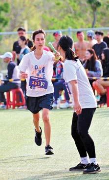 比賽開始後,看著一棒接著一 棒跑出去的學生,可以明顯的感受 到每個人的進步,還記得剛開始的 時候,大部分的人不是跑不起來, 或是跑起來怪怪的,甚至操場一圈 都不一定跑得完,跟現在有明顯的