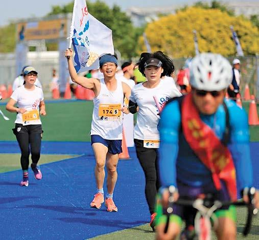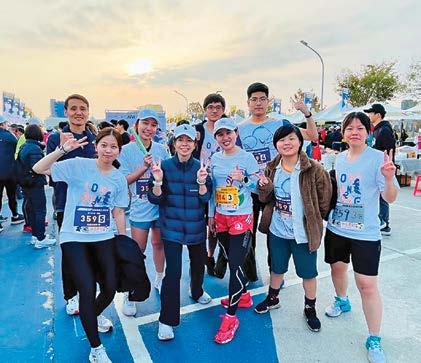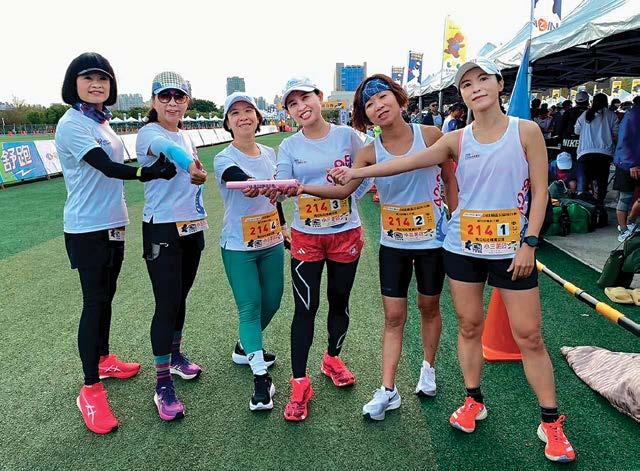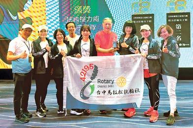 在這場賽事盛會中,台中馬拉松社當然是當 仁不讓,勇奪扶輪組男子組及女子組第一名的佳 績。因為這場接力賽更將社友寶眷們的情誼更緊 密的連結在一起。