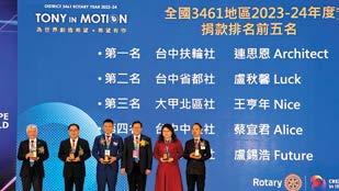 日在新民高中舉辦DLS地區領導人研討會,今 年採取引導方式舉行,團隊依職務分組,大家 將今年的心得分享出來,讓這些經驗能夠傳承; 三月十五日晚上舉辦RI社長代表晚宴及保羅哈 里斯感恩餐會,席間表揚本年度捐獻AKS及鉅 額捐獻之社友,很難得有豐原北區社社友Brain PP認捐AKS Level III達到100萬美金,成為 全台灣第六位捐獻者,本地區達到AKS捐獻社 友目前共8位,今年度達到鉅額捐獻者共有30 位,還有424位社友捐獻保羅哈理斯,讓今年 的目標能夠達成,非常感謝大家的愛心。