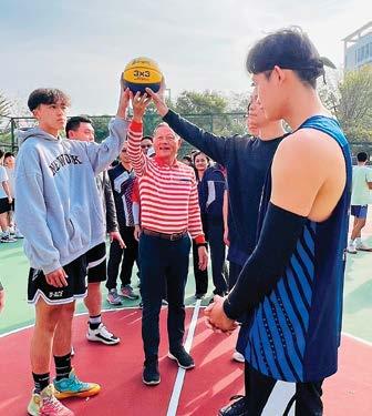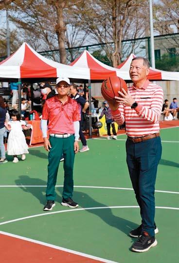 比賽開始前,大會規劃兩個歡樂的小活動,一個是中 場投籃,用贊助獎金給選手們暖暖身,另一個則是罰球線投 籃,用禮品給扶輪社友們挑戰投籃,我們的大家長總監更