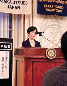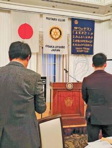 43年的扶輪社,扶輪鐘見證 大阪UTSUBO扶輪社歴史。大阪 UTSUBO扶輪社,今年社長是位女 性,扶輪二代,才貌出眾,氣質優雅, 溫柔婉約的領導風格,令人佩服。大 阪UTSUBO扶輪社是非常傳統的 扶輪社,每位社友皆正式服裝出席例 會。例會時間一小時,包括用餐精美 可口的日式便當,真有效率。