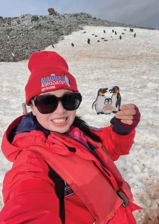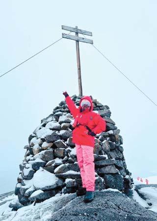 「南極登頂」南極大陸,地球上最 高的大陸,平均海拔高度為2350米, 海拔高,空氣稀薄,且極區空氣壓力 較小,所以空氣中的含氧量較少(約 70%)。Angel 在南極登山攻頂,極地 訓練,意外收穫,提高最大攝氧量。回 到台灣跑步,感覺不會喘,最大攝氧量 由50提升至52。挑戰2024年2月25日 渣打馬拉松賽,全馬42公里,4小時初 完賽,順利破PB。參賽228扶輪盃馬拉 松公益接力賽,台中馬拉松扶輪社,接 力扶輪女子組冠軍。拜「南極」之賜, 經過極地訓練,體能上升,更加健康快 樂幸福滿分。