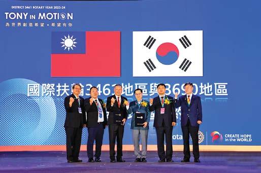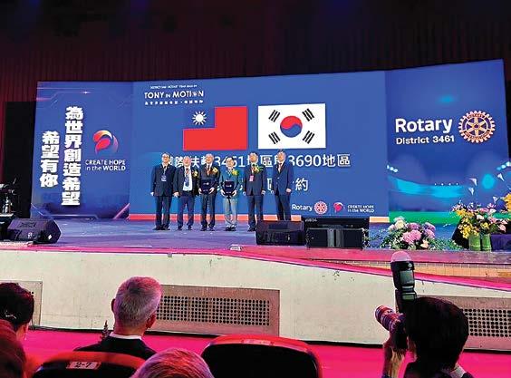 試;因應不同國家的貴賓參加,螢幕也同 時呈現多國語言,讓大家都能隨時掌握情 況;也利用這次機會與3690姊妹地區交換 合約,與3800地區簽署友好地區合約,希 望能加強國際性的連結與合作,讓社友們 有更多資源;來自日本2640地區堺扶輪社 的前總監 福井 隆一郎是RI指派來參加年 會的社長代表,他在來台前就請我們提供 地區資料,詳細研讀後寫出這次的演講稿, 內容有許多扶輪發展方向看法值得參考,也 對我們地區發展及年會內容讚譽有佳。