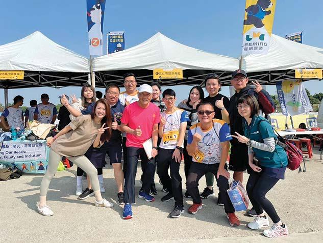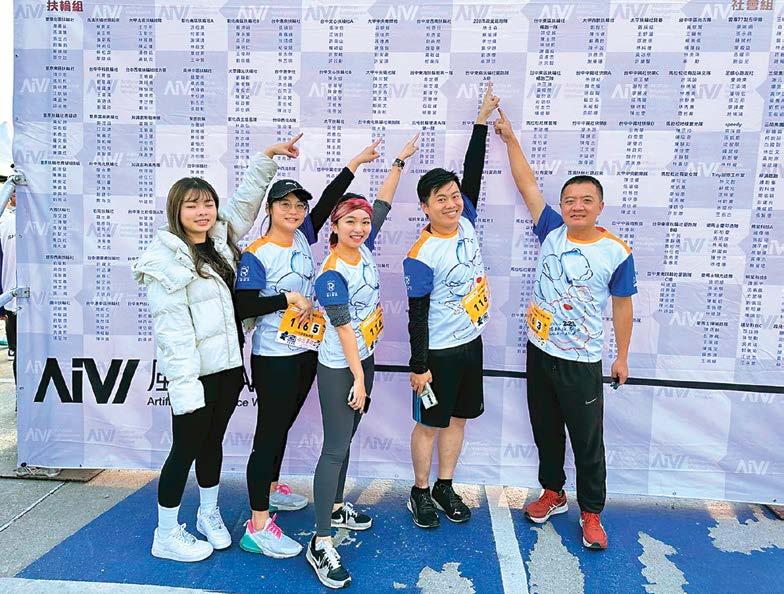 今年由兩個區所舉辦的路跑活 動,我們市政社報了一隊,隊名是: 「扶輪愛亂跑隊」。這一屆還特別規 劃有小學組的組別,台中馬拉松社 Kitty詢問是否讓家中的小學生來參