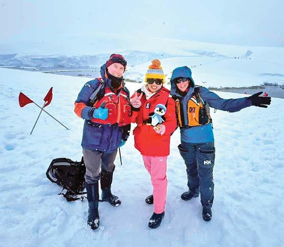 出發,經過幾天的航行,抵達南極半島。遊輪上會有專 業的南極探險員和科學家,介紹南極的歷史、地理和生 態,並安排登陸及乘坐衝鋒艇,探索南極的各個角落。