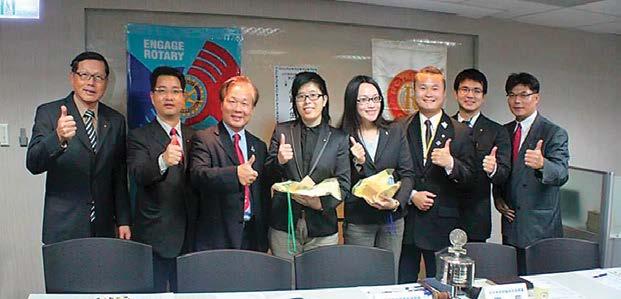 北3481地區台北城中團〈結盟28 年〉、陳弘昔〈第10屆團長〉、陳 建助、施美嘉〈第28屆團長〉、莊 珣芳、陳昱瑄〈第28屆團長〉、康 乃元〈第33屆團長〉等。六位團員 參加國際團體交換學生〈G.S.E〉, 多數團員都不是扶輪二代或至親好 友子弟,只因我們是台中扶輪青年 服務團團員,對我們無私的奉獻,