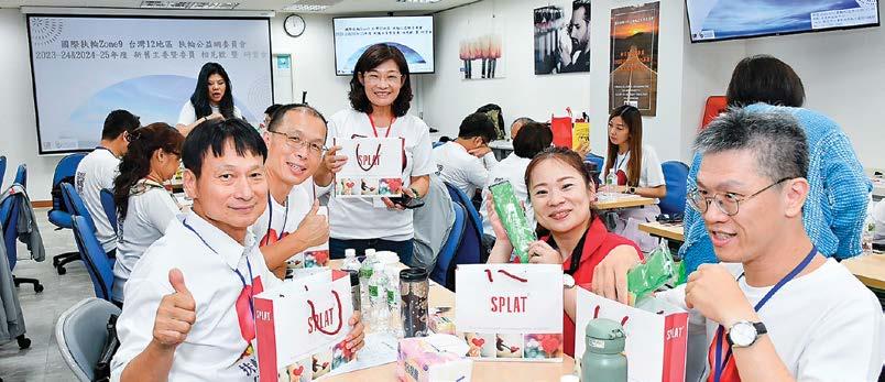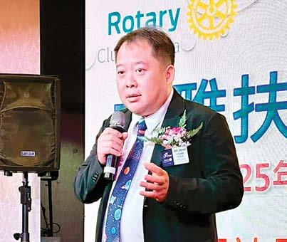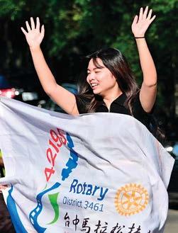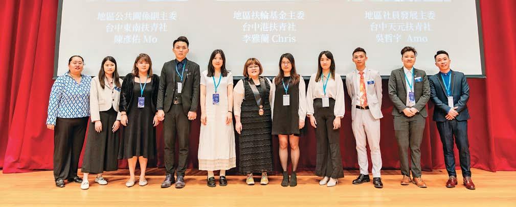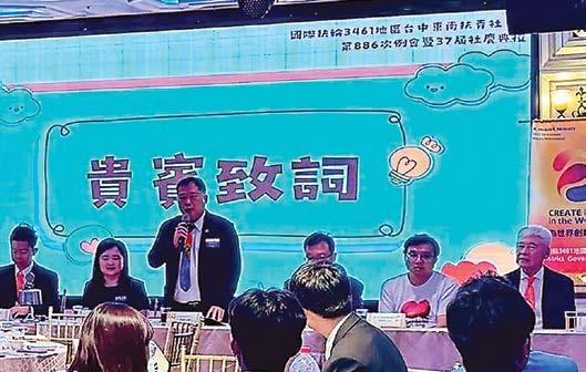 換學生。這些都是要感謝我們扶輪社的幫忙才有這個機 會,所以我覺得說,既然我們扶輪社有這個需要,我們 必須要站出來,能夠大家互相的支持真正需要幫助的時 候、需要互相扶持的時候,我們毅然決然的要站出來服 務地區,將竭盡所能完成所有的任務,讓地區發展得更 順利。同時感謝我的秘書長Paper,還有我們的團隊們