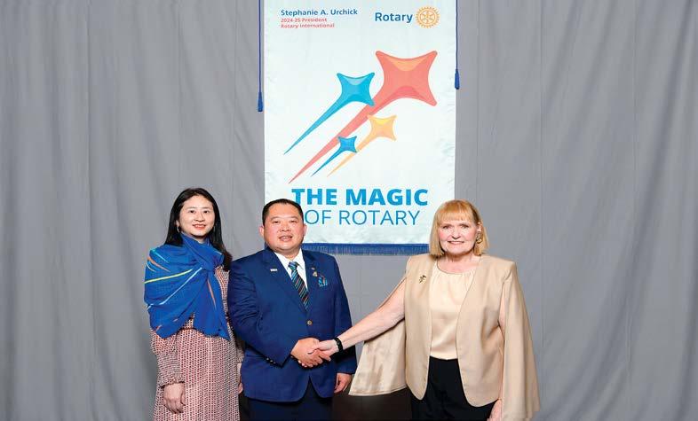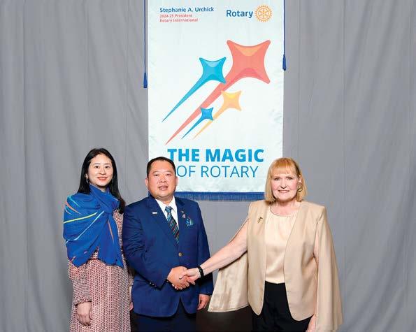 2024-25年度是個魅力無敵又 充滿神奇的年度,我們在改變自己和 改變世界的過程中共同前進的迫切需 要,我們透過每一次的行動,一起 「推進」神奇扶輪,積極完成每一個 服務計劃,或捐贈的每一美元,或籌 款幫助改變世界,一起「解鎖」神奇 扶輪,釋放婦女和女孩的力量,一起 「增長」神奇扶輪,為各社添加每一 位新社員,都是在創造今年的神奇。