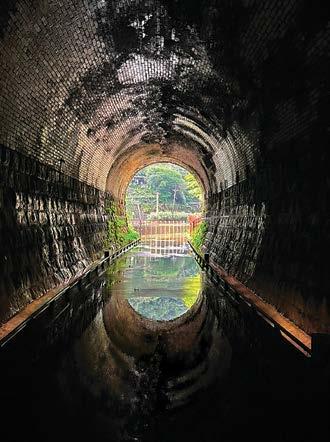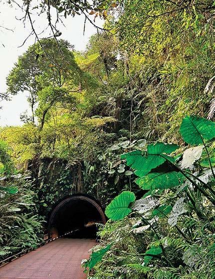 公里,建造出全台第一條「鋼筋自行車道」, 設計師利用水池設計讓洞口從黑到亮,與三貂 嶺翠綠山色相印成讓人驚艷的鏡面反射倒影, 有機會還能與火車相遇,考量從三瓜子隧道至