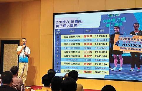也是馬拉松愛好人士,為鼓勵社友 運動,提供了 一定的名額只要在指定的馬拉松賽 事完成人生的 初馬,就用完賽者的名義捐贈5000 元作公益之 用,透過「推手」計畫陪伴社友完成 初馬的夢想 及成就!這樣的作法實為讓人感動了。更了不起 的是不限台中馬拉松社社友,而是鼓勵全國扶輪 社友,扶輪人的付出果然了不起!