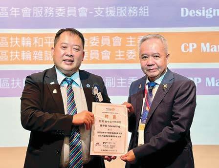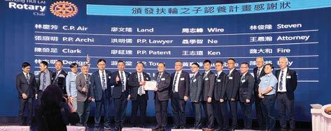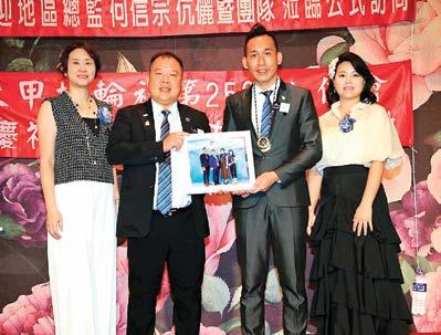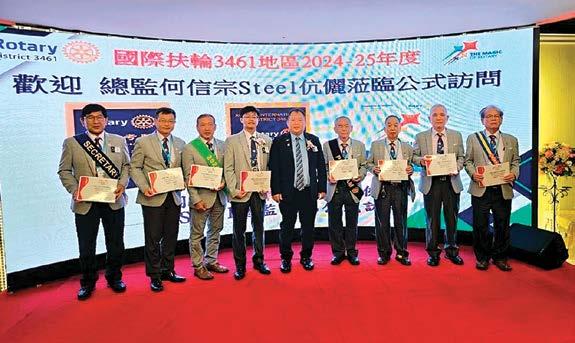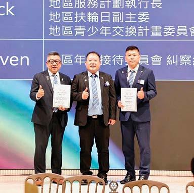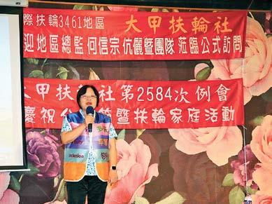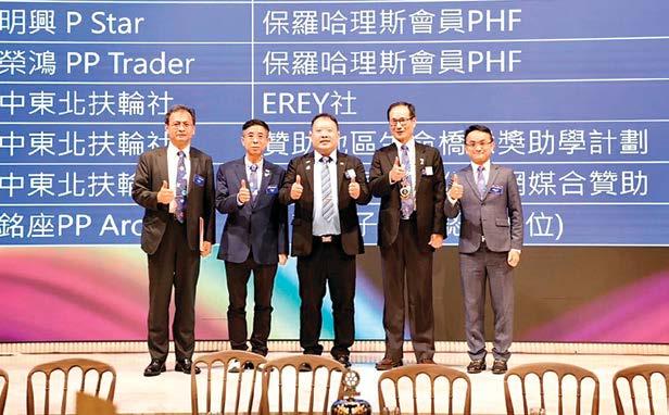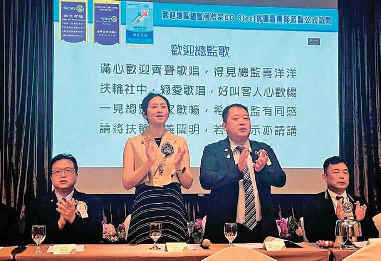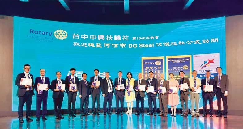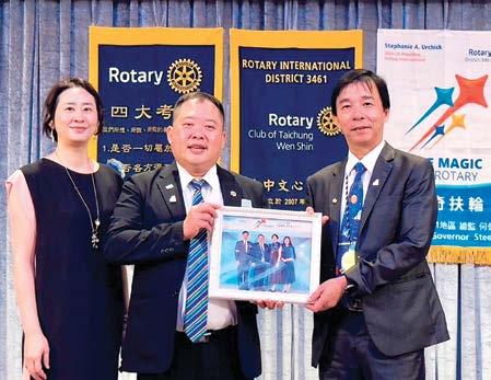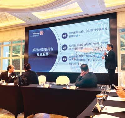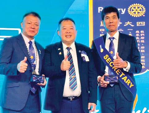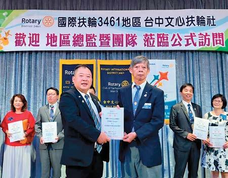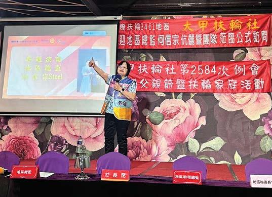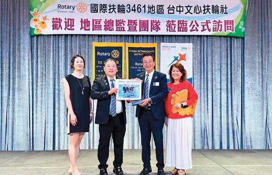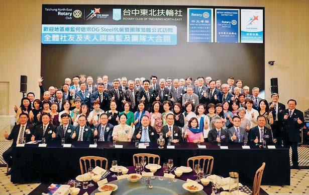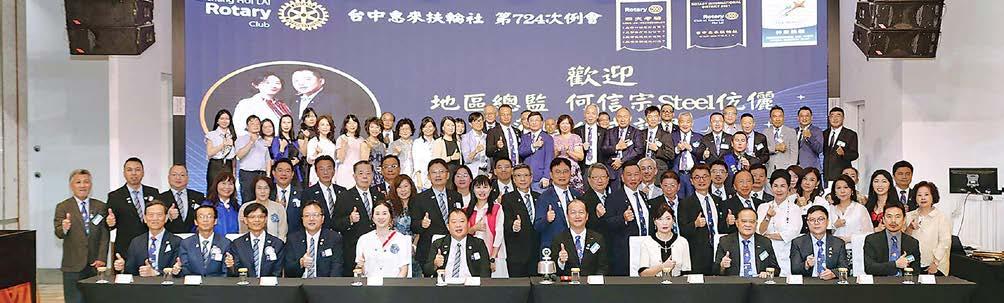 在各位前總監的努力下, 台灣扶輪發展至今12個地區共 有962個扶輪社36,532位社 友,前總監們更是各地區的基 石,相信扶輪的發展在各位前總 監的協助下,台灣扶輪的發展將 持續興盛茁壯,最後感謝前總監 們的參加,也期望常來本地區交 流互訪。我們因舉辦此次大型盛 會,相信我們台中中區社的服務 能量更上層樓,未來的服務只會 更好,也更增加我們的向心力。